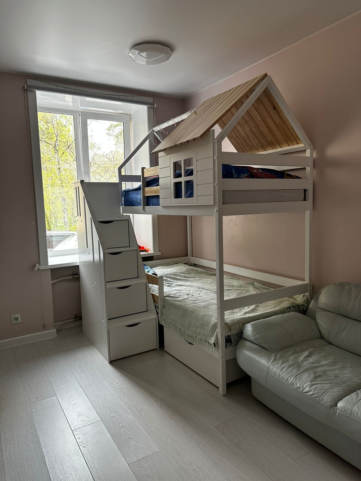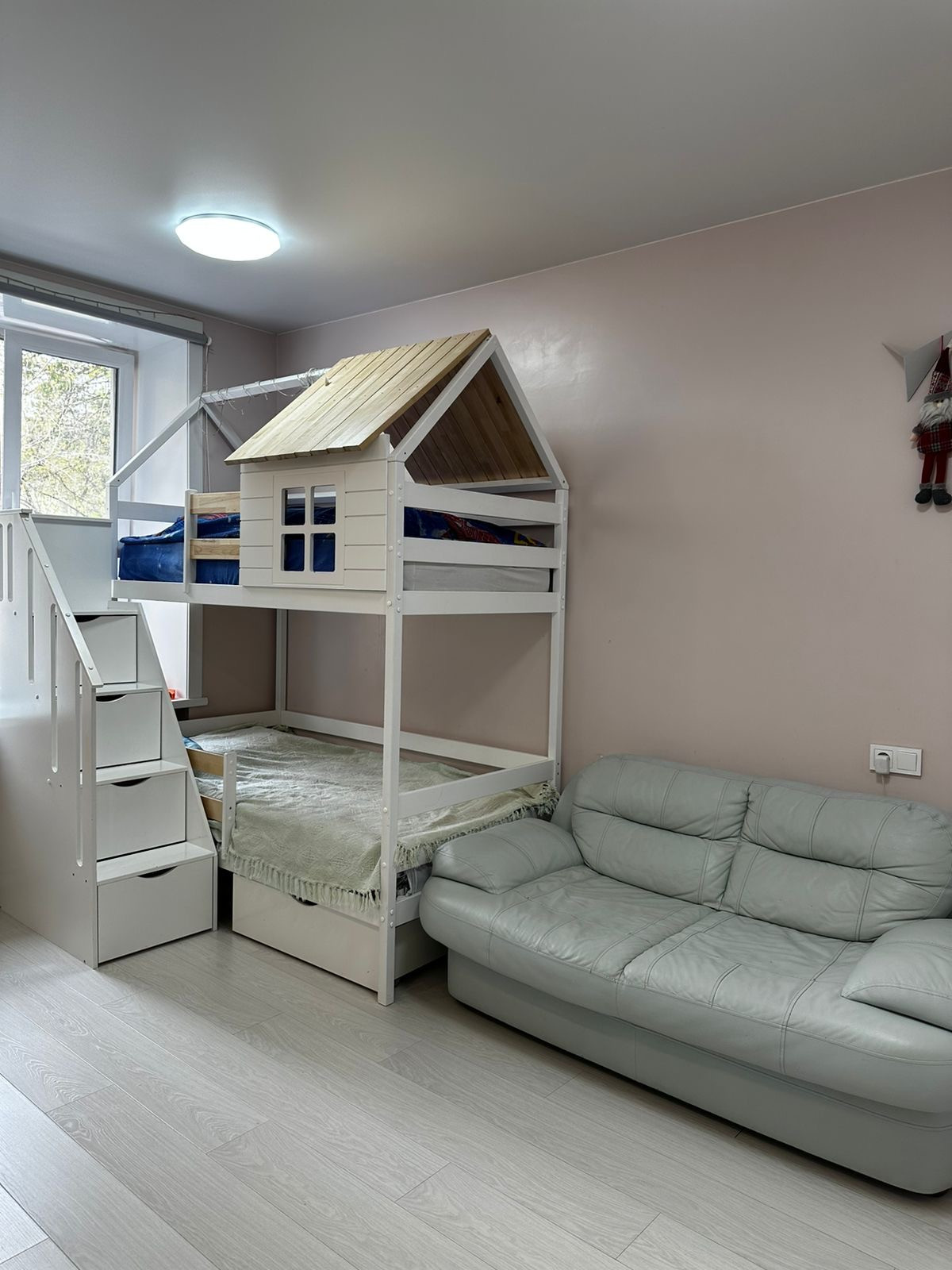 В спальне удобный ортопедический матрас фирмы Аскона. В детской 2-х ярусная кровать сделанная на заказ из натурального дерева с новыми ортопедическими матрасами (пол года пользования), а так дорогой кожаный диван, который раскладывается для гостей. В ванной комнате новая стиральная машина с функцией сушки, что очень удобно. На кухне встроенный холодильник, микроволновка, варочная панель и посудомоечная машина.