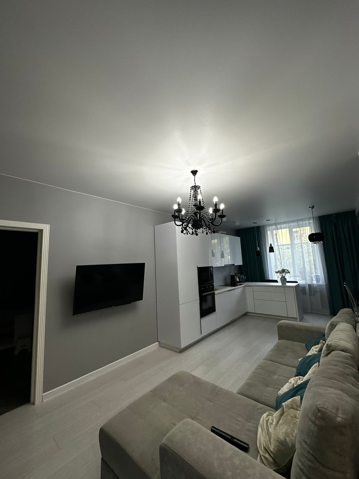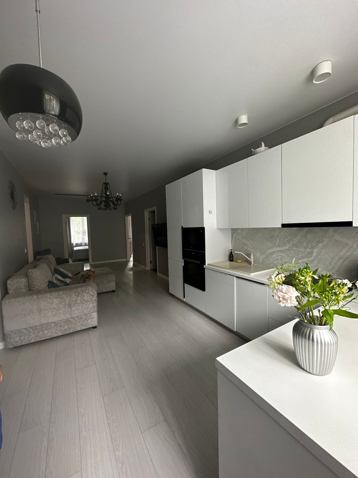 -огромная гостиная совмещенная с кухней
