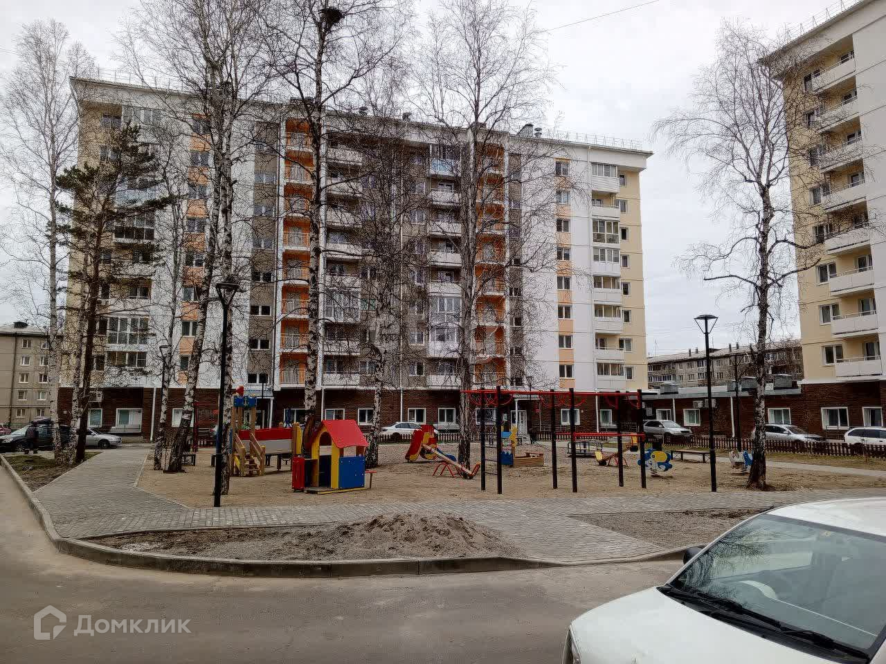 Хороший двор: оборудована детская площадка, имеются парковочные места.