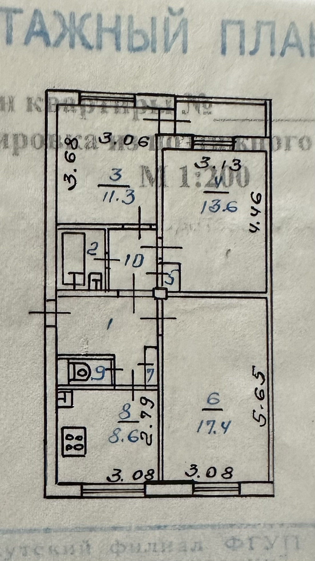 Жилая площадь 42.3 м2