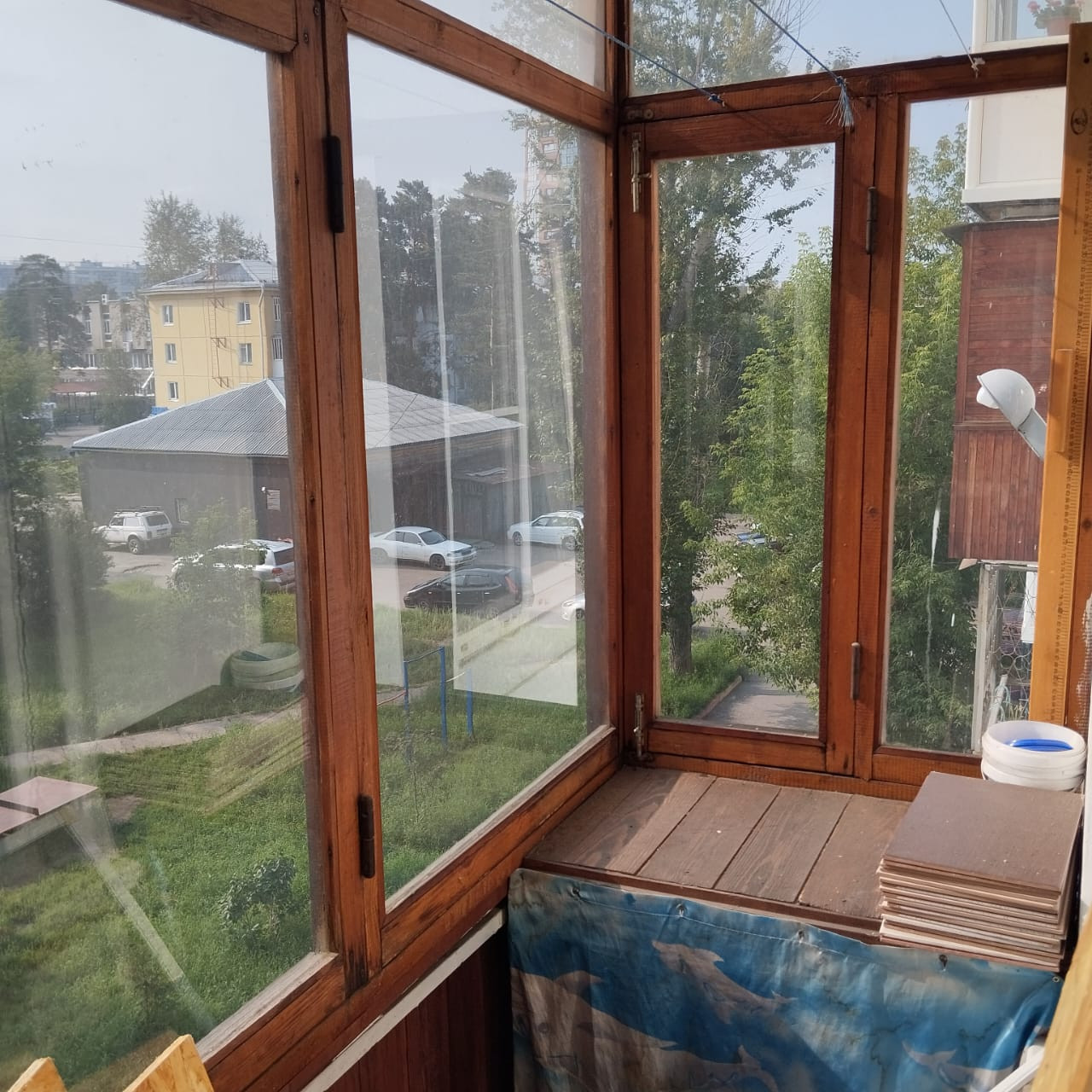 Из окон открывается приятный вид на тихий и зелёный двор, где расположена детская площадка – идеальное место для семей с детьми. Также во дворе имеется парковка, что является большим плюсом для автовладельцев. Подъезд после ремонта чистый, соседи тихие и спокойные.