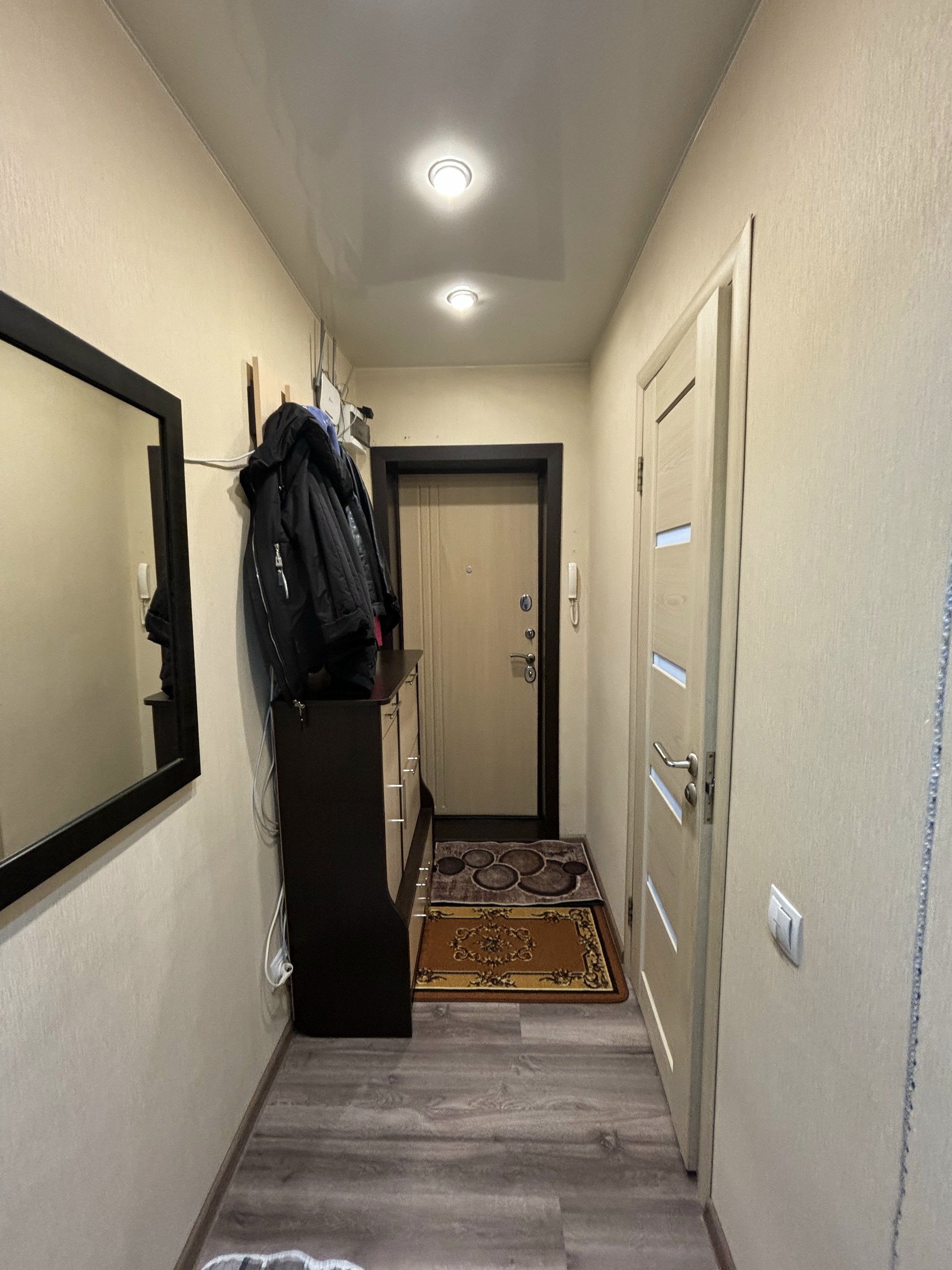 Расположение: квартира находится в удобном районе с развитой инфраструктурой — рядом магазины, школы, парки и транспортные остановки.