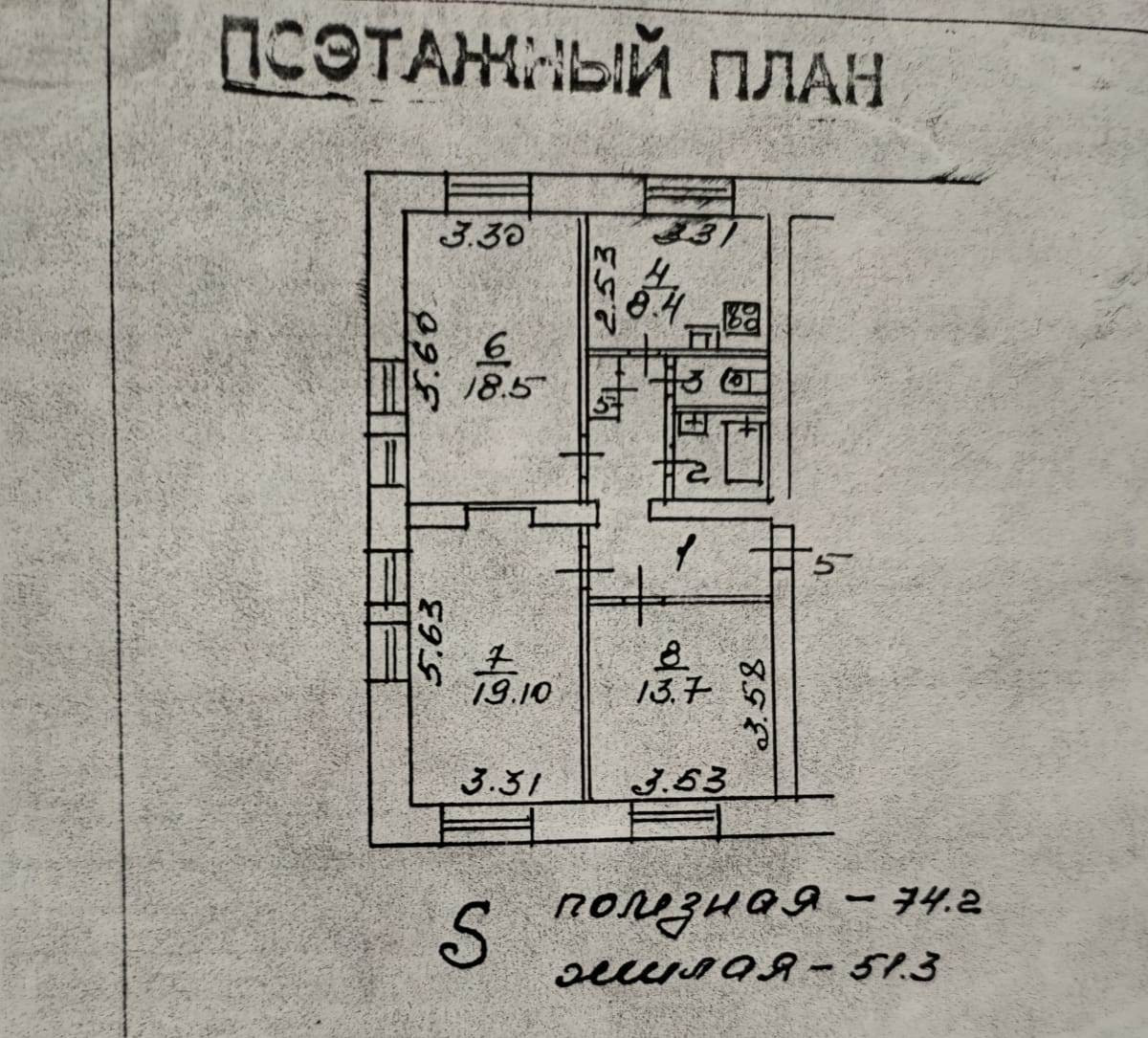 Жилая площадь 51.3 м2