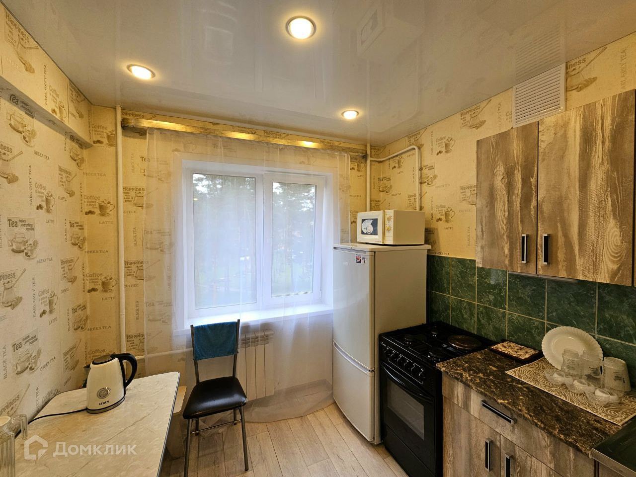 Входная дверь евро, на полу линолеум, стены все выровнены, потолки натяжные. Заменены межкомнатные двери. Стеклопакеты, AL- радиаторы. Остается почти вся мебель и техника, централизованное газоснабжение.  На подъезде металлическая дверь с домофоном.