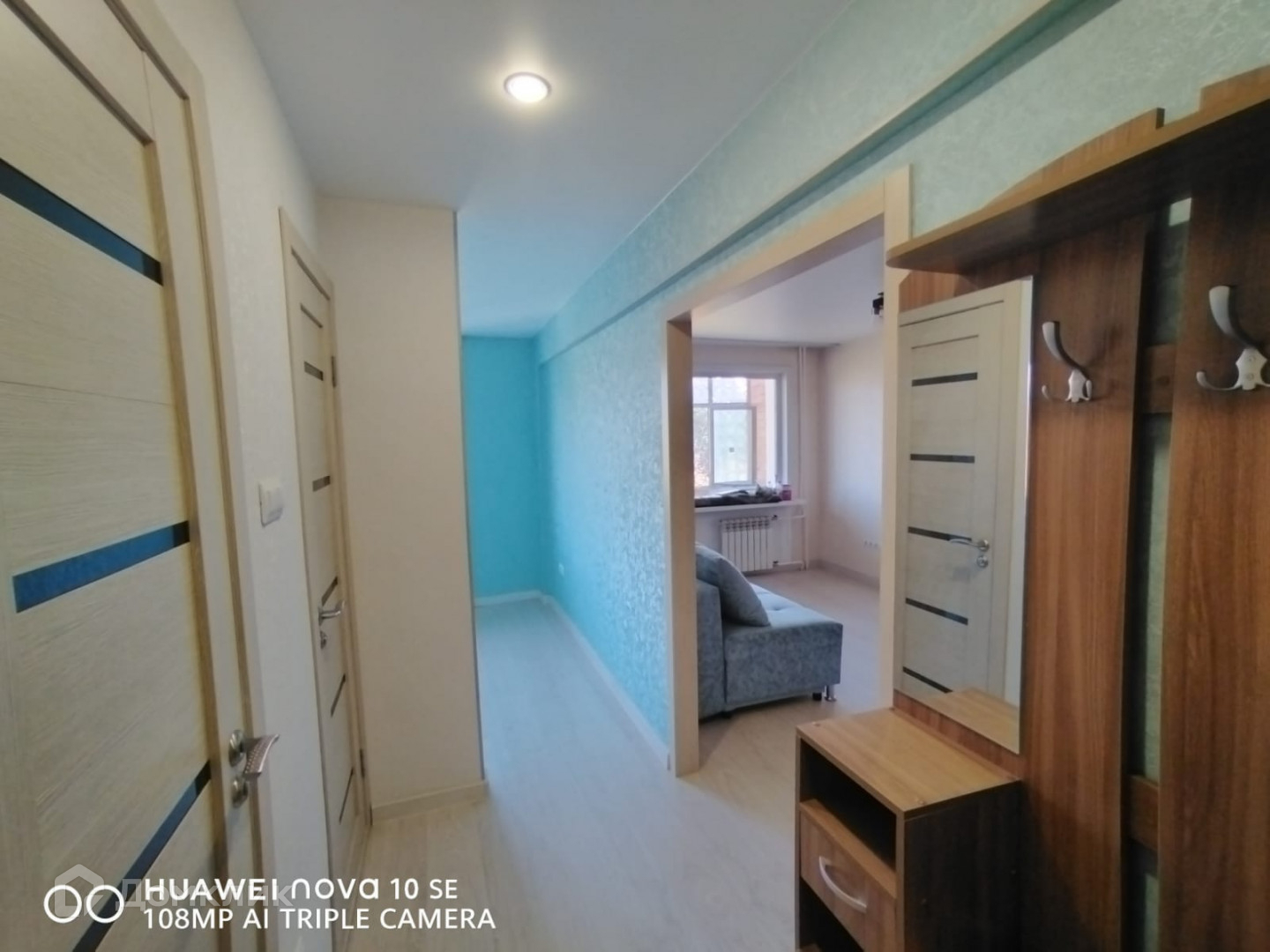 В квартире остается вся мебель, что на фото:  прихожая, диван, шкаф.