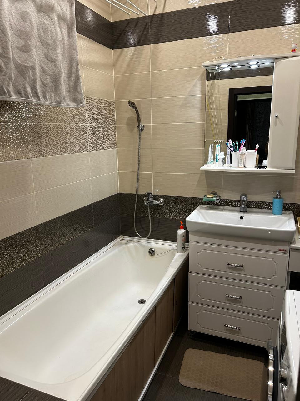В сан узле кафель, трубы поменяны в процессе ремонта –медь.