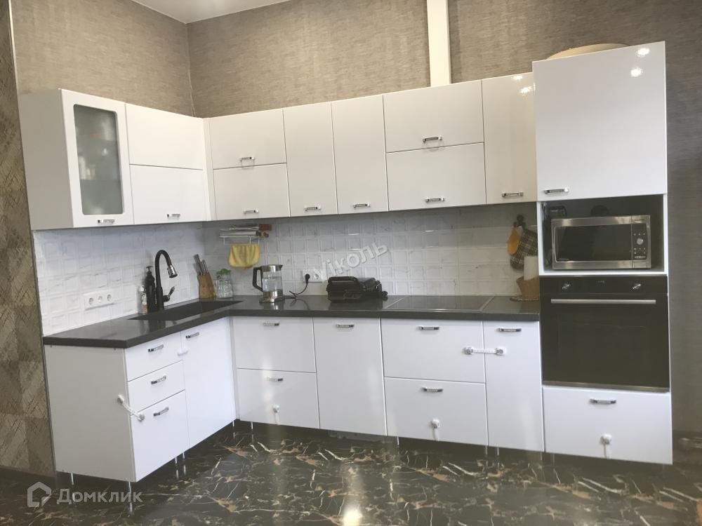 Новым жильцам остается в подарок дорогой встроенный кухонный гарнитур из качественных материалов с техникой (духовой шкаф, варочная индукционная панель и посудомоечная машина).