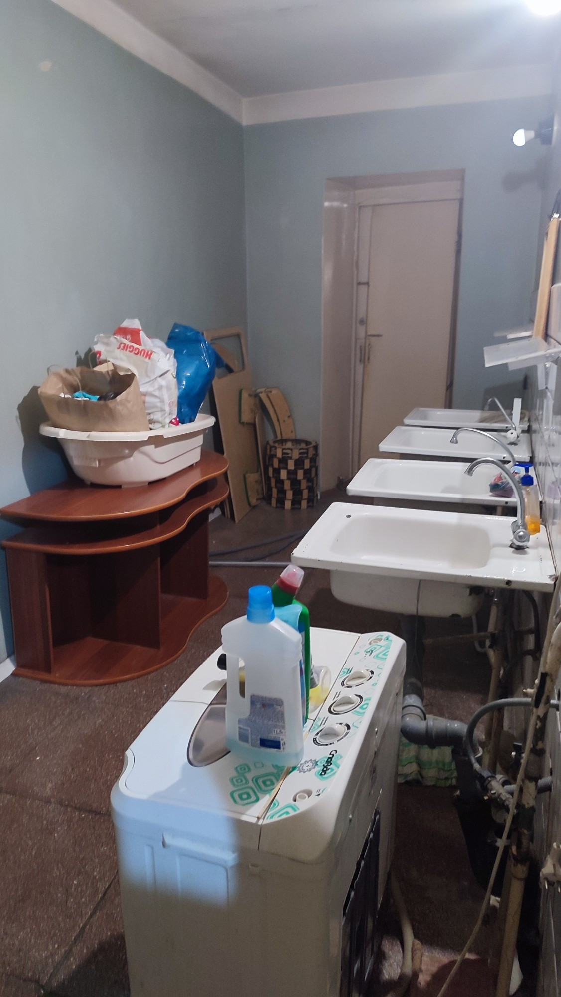 Окна выходят во двор, на 4 комнаты туалет и душ ( закрываются на ключ), общая большая кухня, постирочная, дверь в секцию закрывается, на этаже тоже