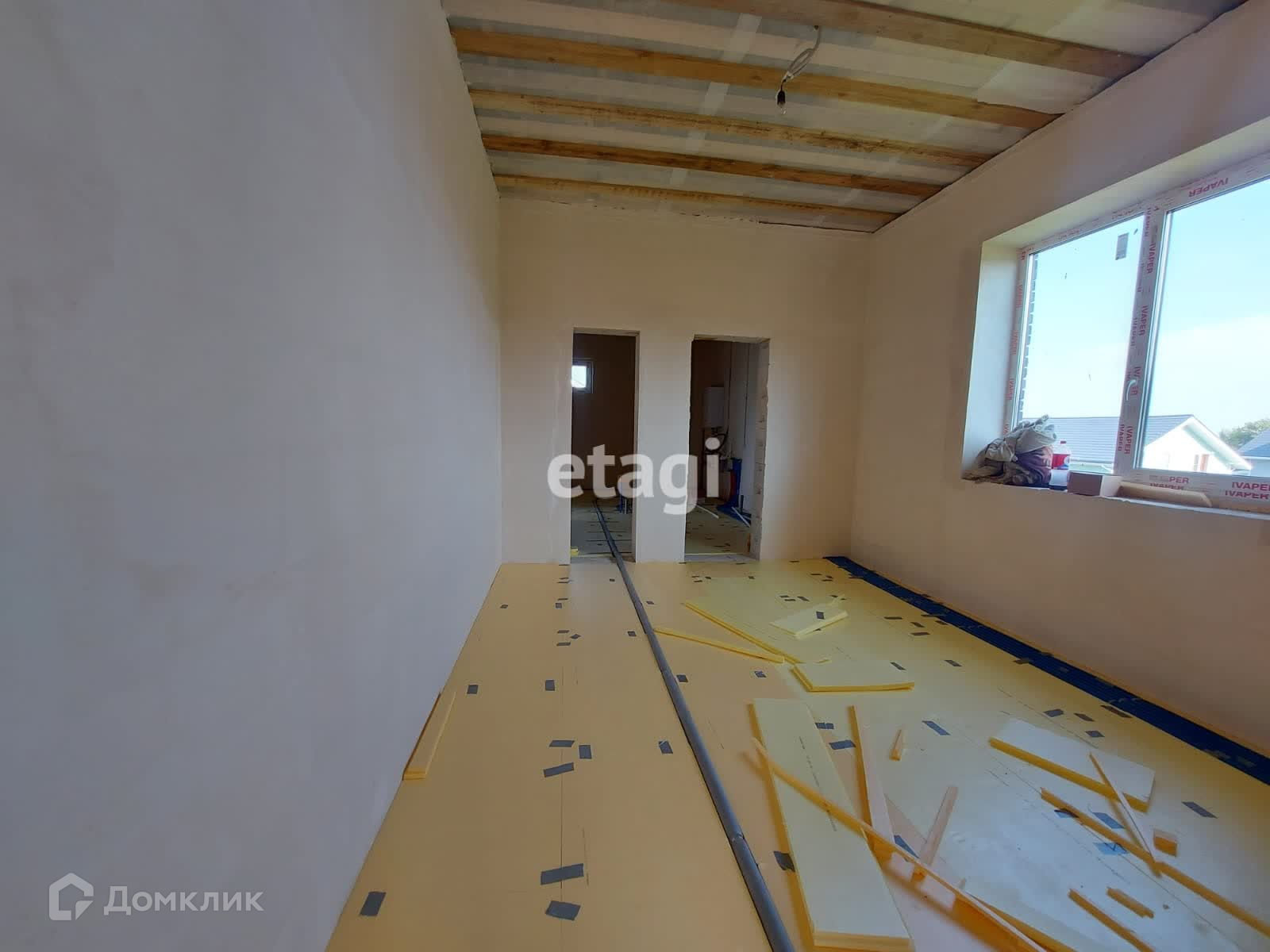 Подведена вода (скважина), электричество и канализация. Отделка предчистовая, сделана разводка воды, теплый пол по всему дому и установлен котел.