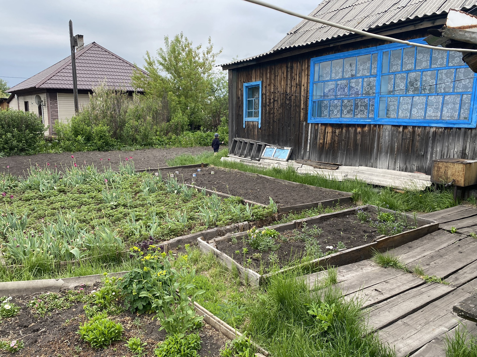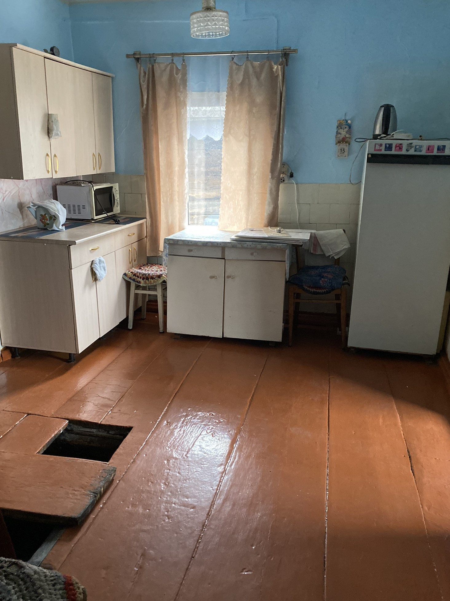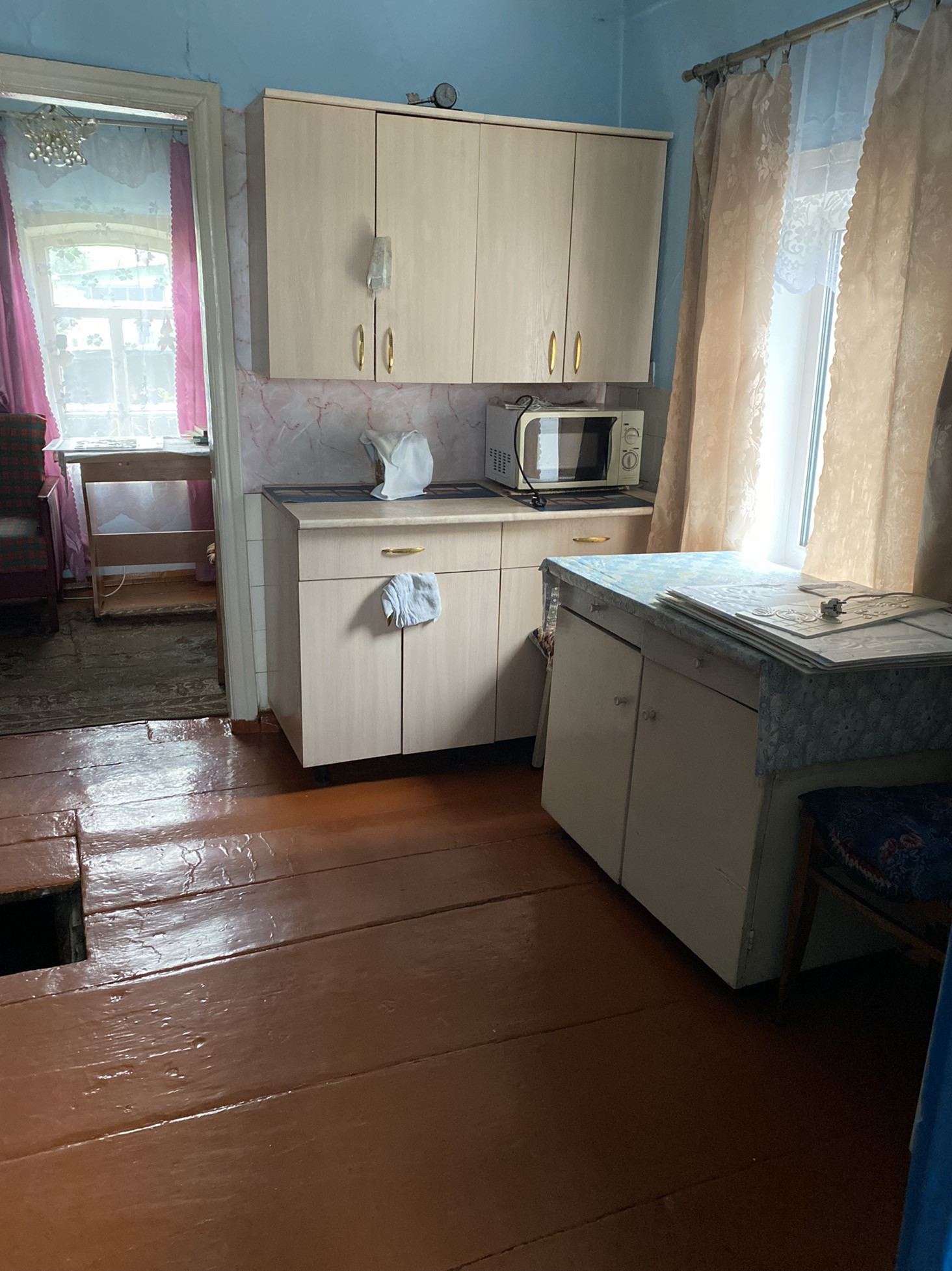 Окна в доме деревянные(в кухне пластиковое окно)