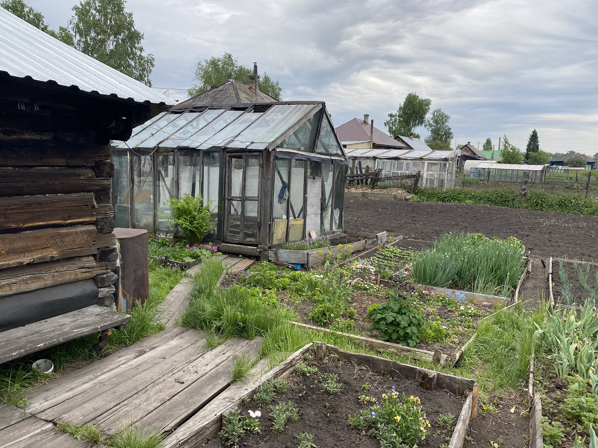 Огород ухоженный(теплица) , на территории растут разнообразные ягоды и деревья: (вишня,жимолость ,малина,виктория,смородина ,ирга)