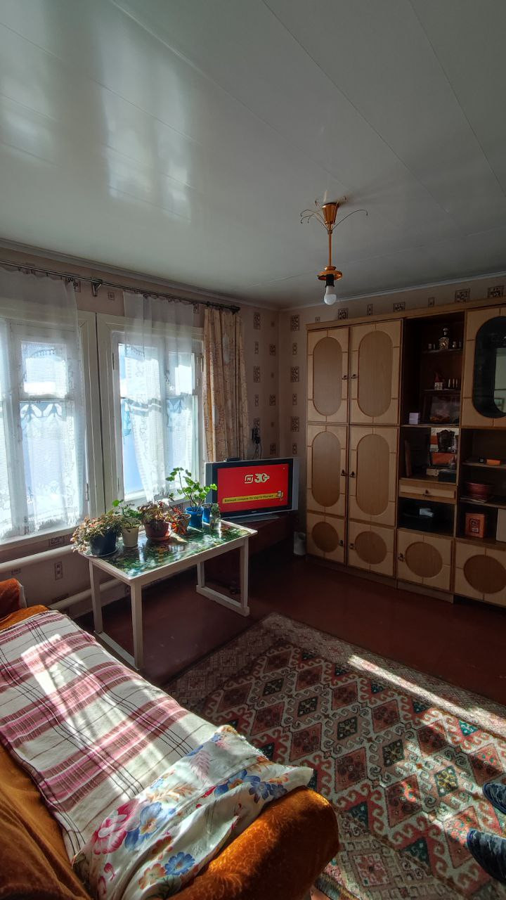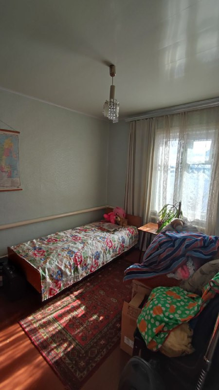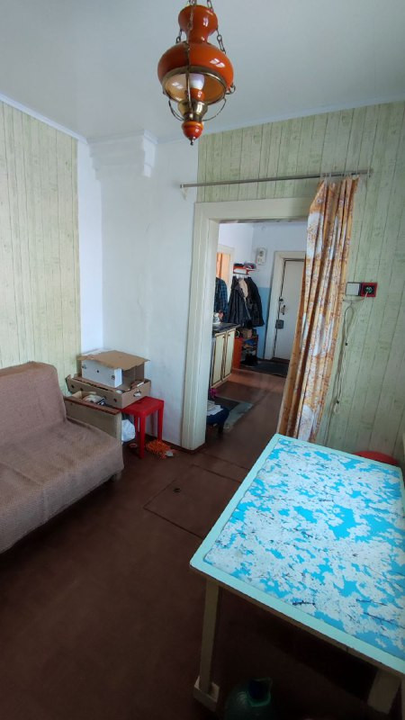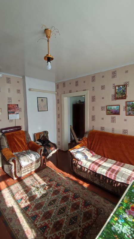 Хороший 3-х комнатный дом общей площадью 42.4 кв.м., расположенный в районе 1-го участка. В доме водяное отопление, имеется совмещенный санузел, стены облицованы кафельной плиткой, потолок обшит пластиковыми панелями. Пол деревянный, застелен оргалитом, частично линолеумом.