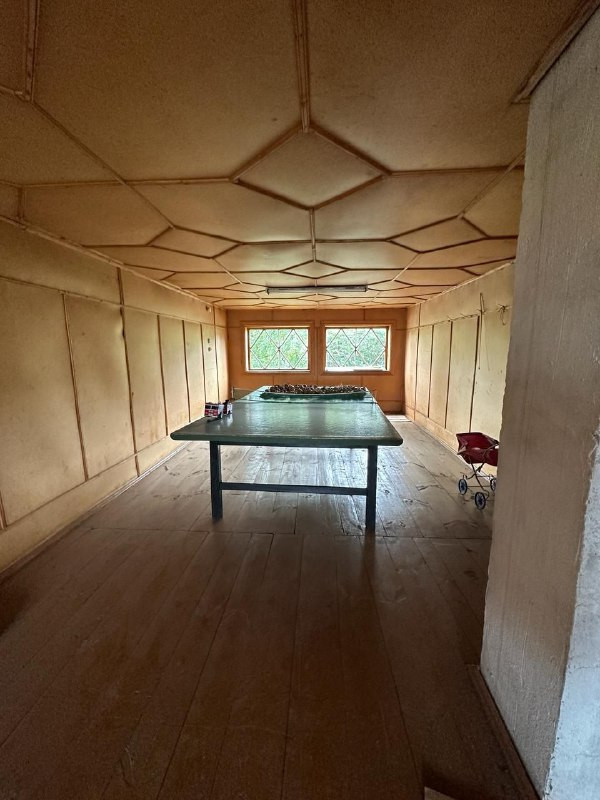 Имеется большая кирпичная постройка, в которой располагается баня с отдельной парной комнатой и предбанником с печкой. Рядом с баней небольшой бассейн. Просторная летняя кухня (пол застелен линолеумом, потолок обшит деревянными панелями). На втором этаже располагается просторная комната для отдыха, где можно разместить различные развлекательные предметы. Поставить бильярд, теннисный стол, сделать домашний кинотеатр и многое другое для совместного отдыха с семьей и (или) друзьями. На первом этаже на окнах установлены решетки.