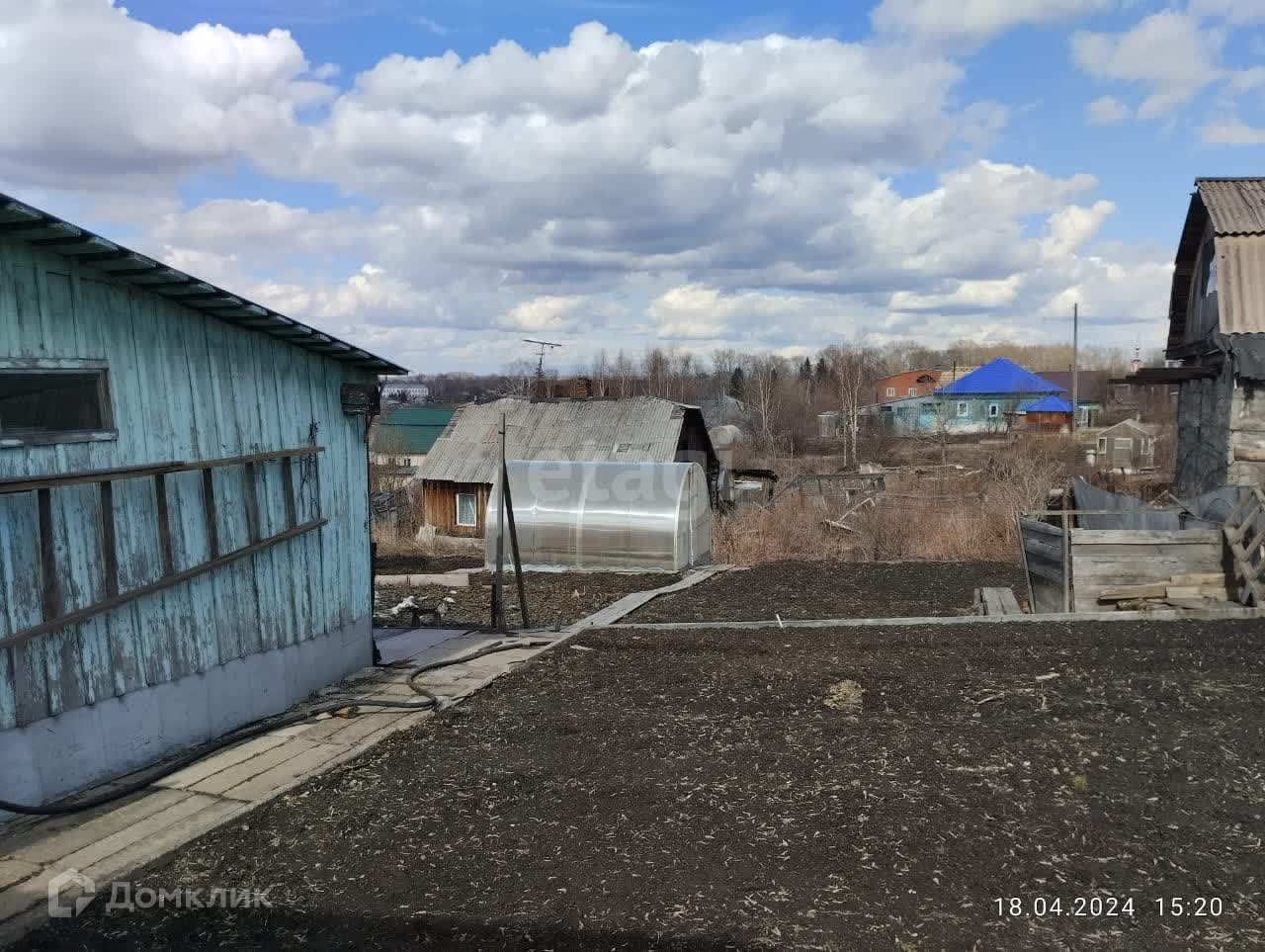 Огород разработан, имеются 2 поликарбонатовые теплицы. Насаждения: жимолость, крыжовник, смородина, малина, калина, виктория, вишня. В огороде стоят две ванны для набора воды. Подпол и погреб сухие.