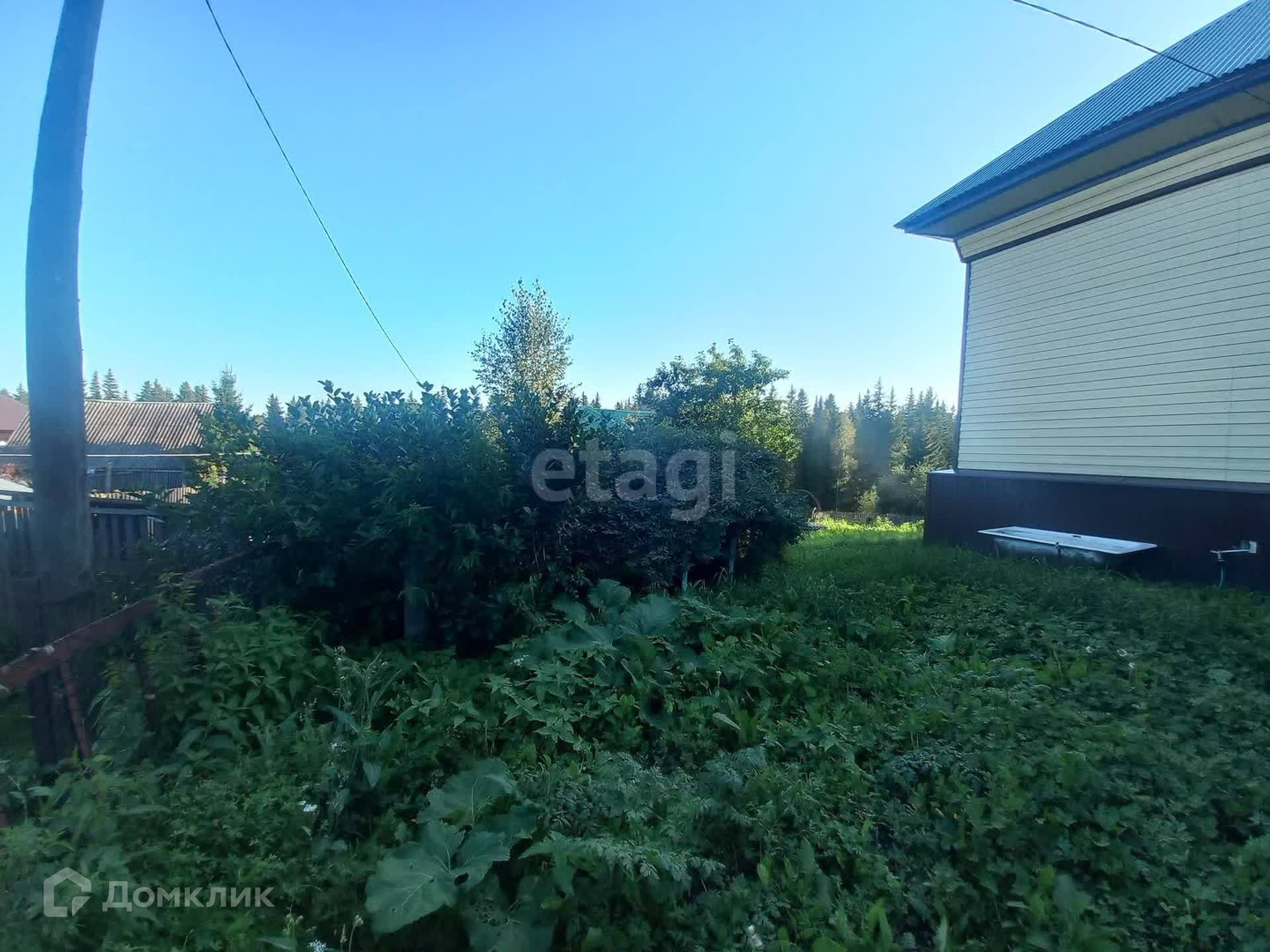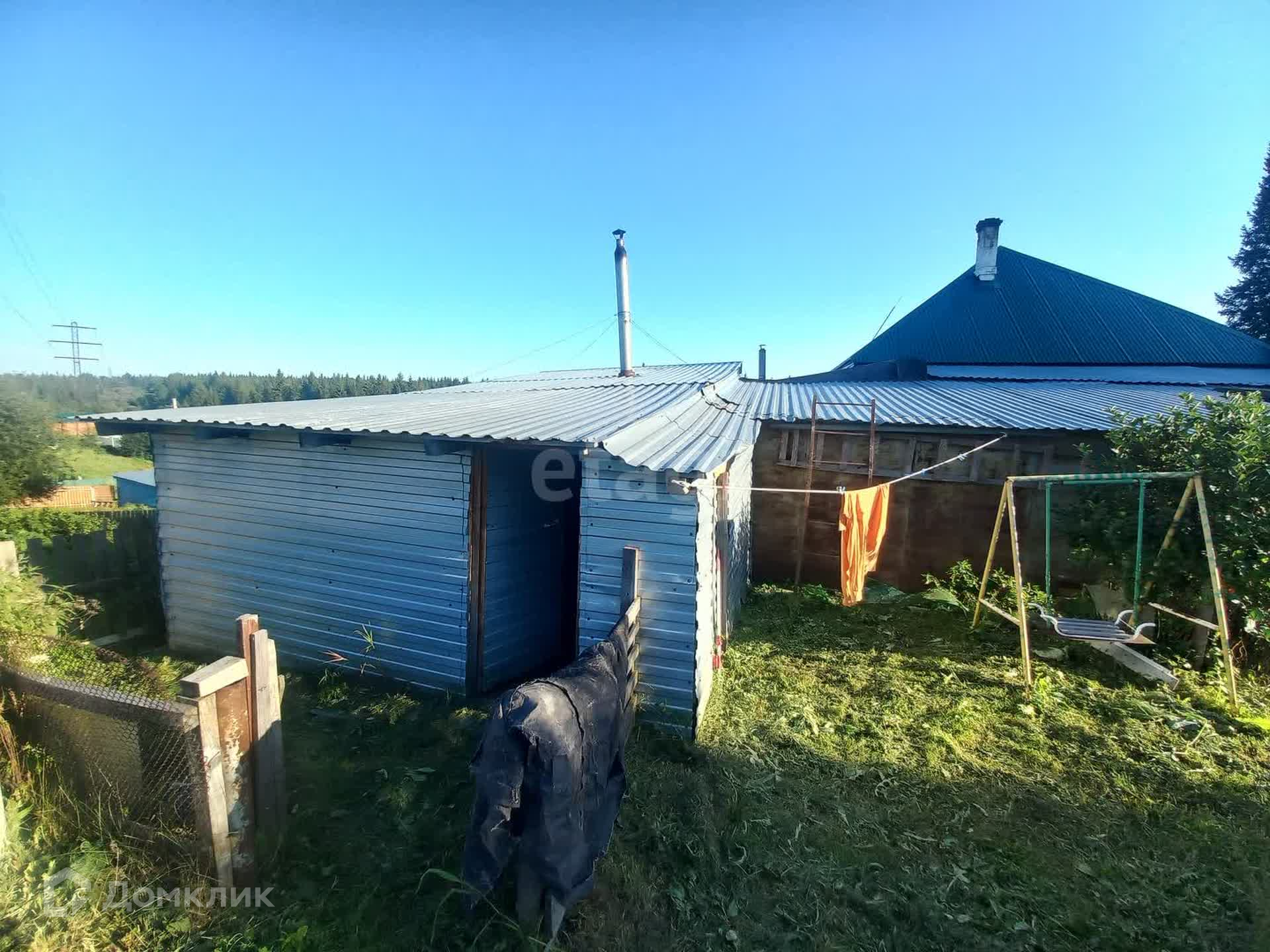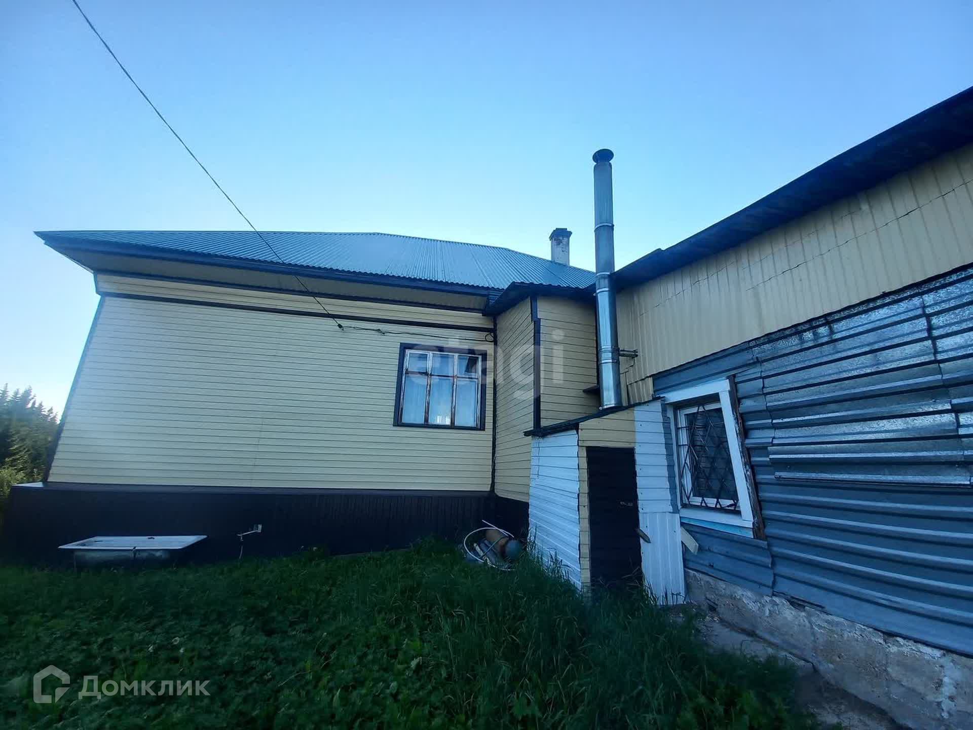 Материал стен - бревно. Обшит сайдингом, на крыше профлист.