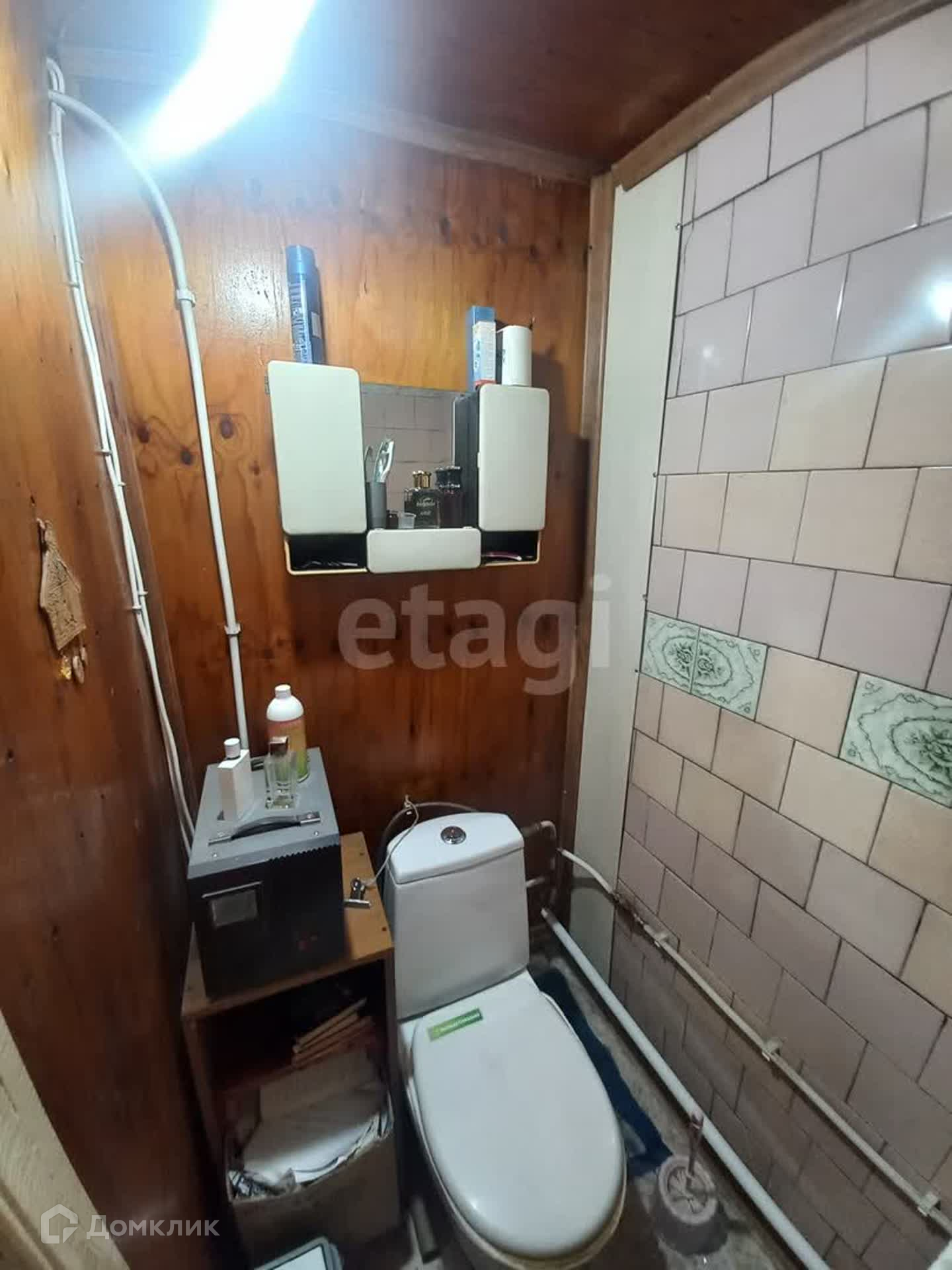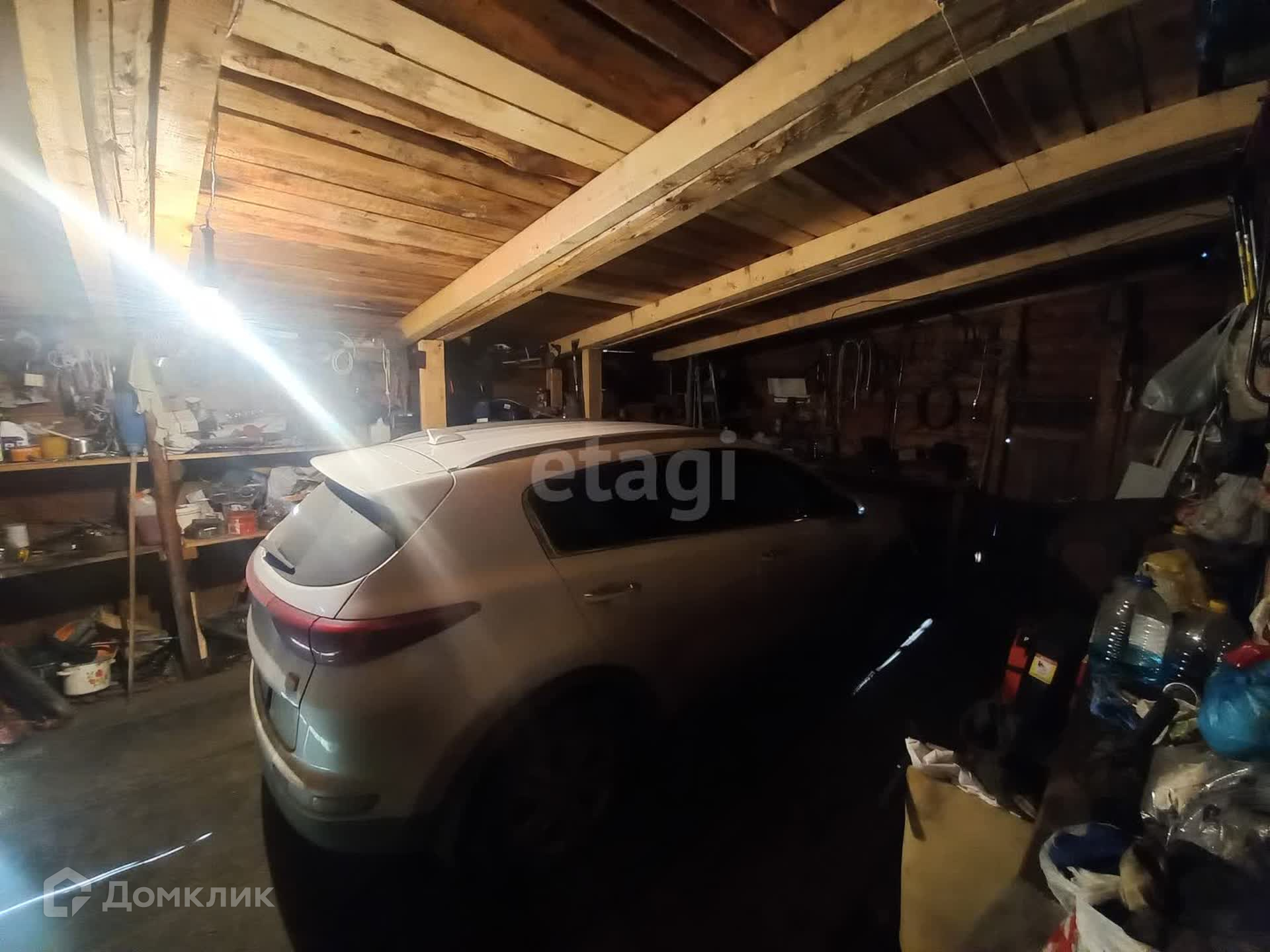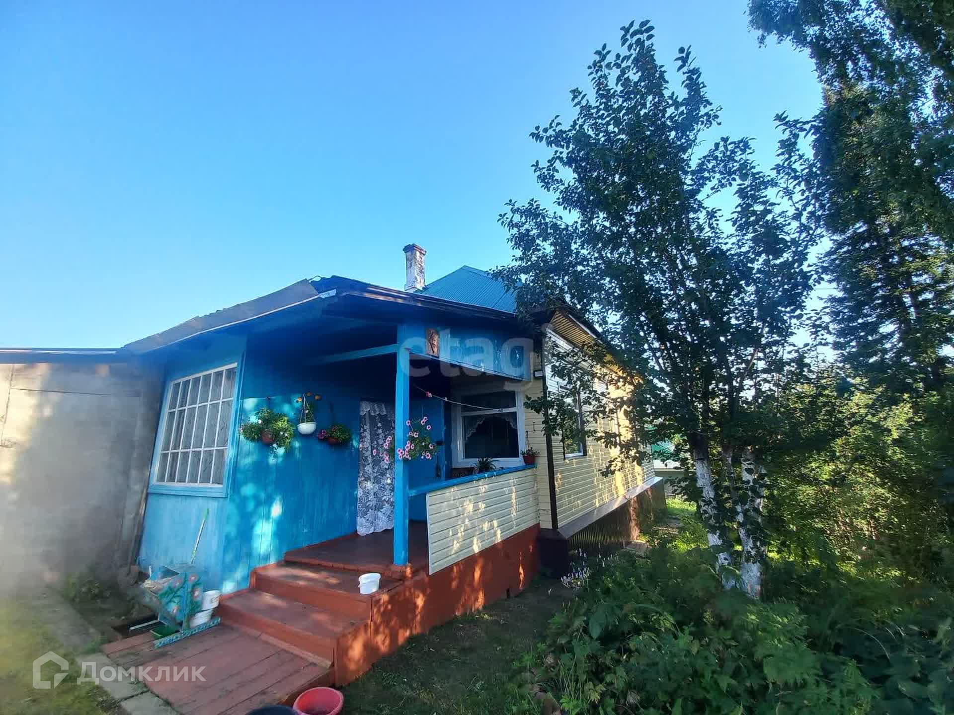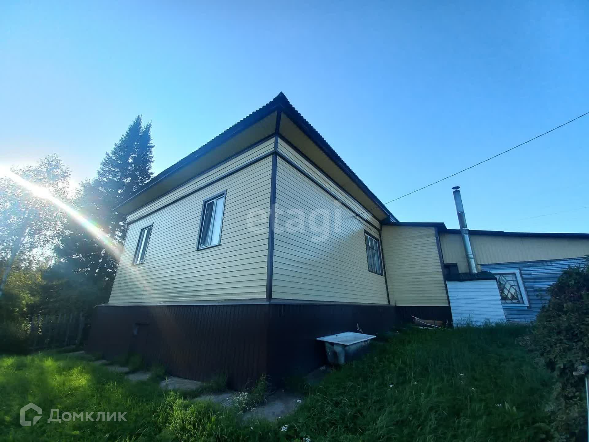 Материал стен - бревно. Обшит сайдингом, на крыше профлист.