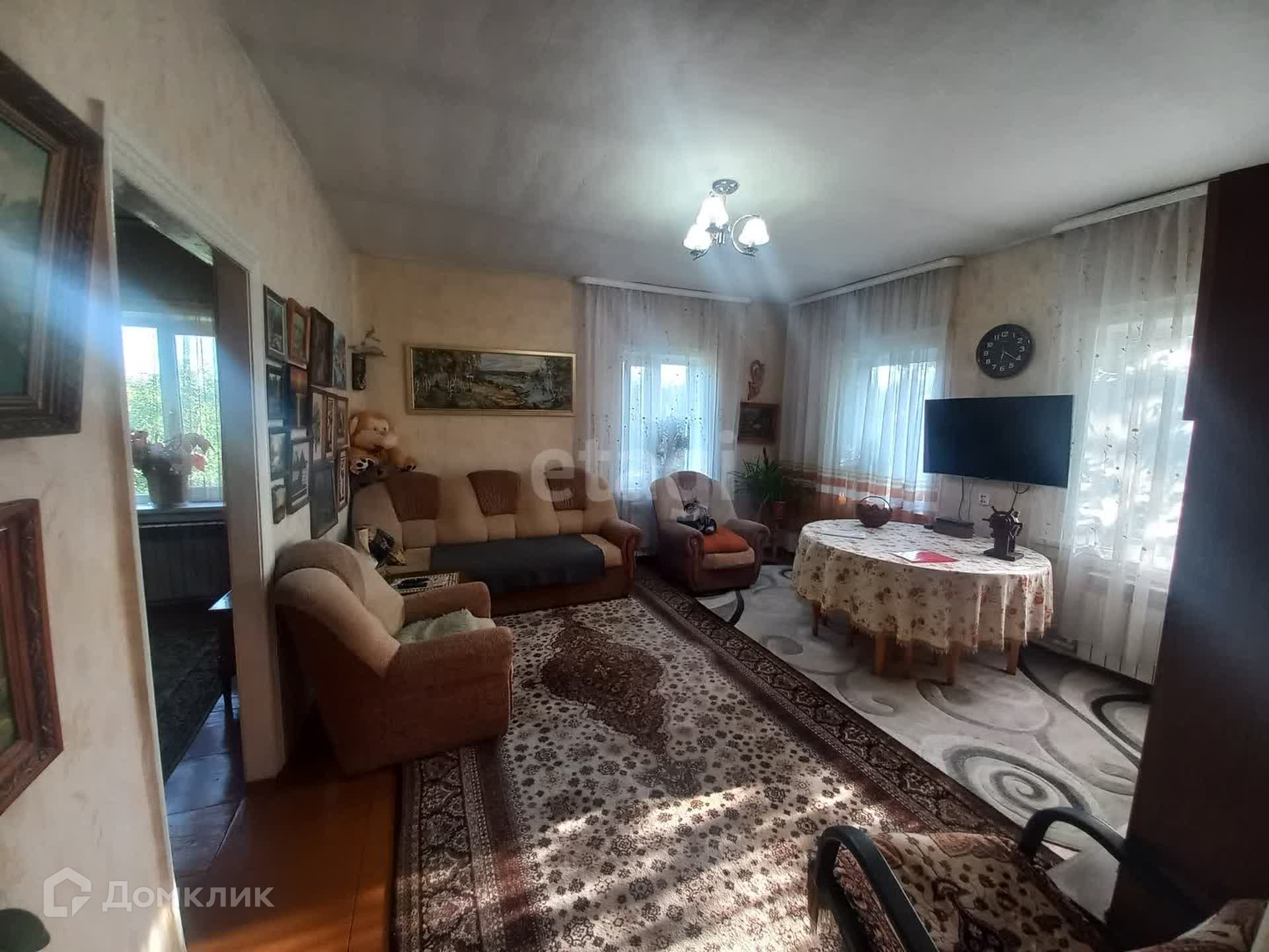 В доме четыре просторных комнаты(окна выходят на разные стороны), кухня и обеденная зона, сан узел с водонагревателем.