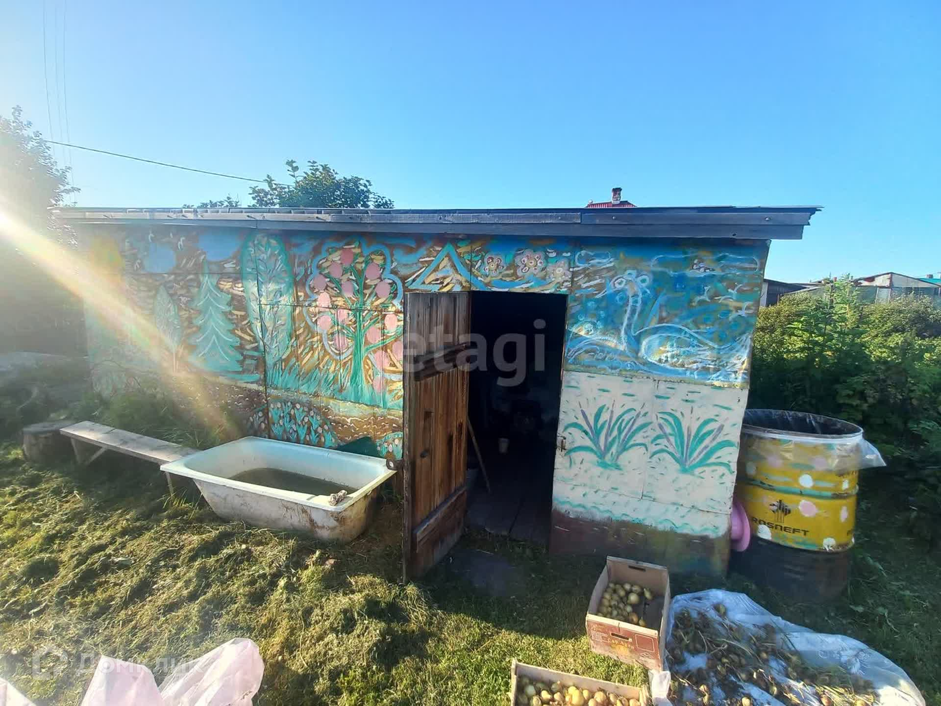 На земельном участке расположены : второй гараж, теплица, сарай, вагонетка, качели, загон для животных, различные плодово-ягодные насаждения.