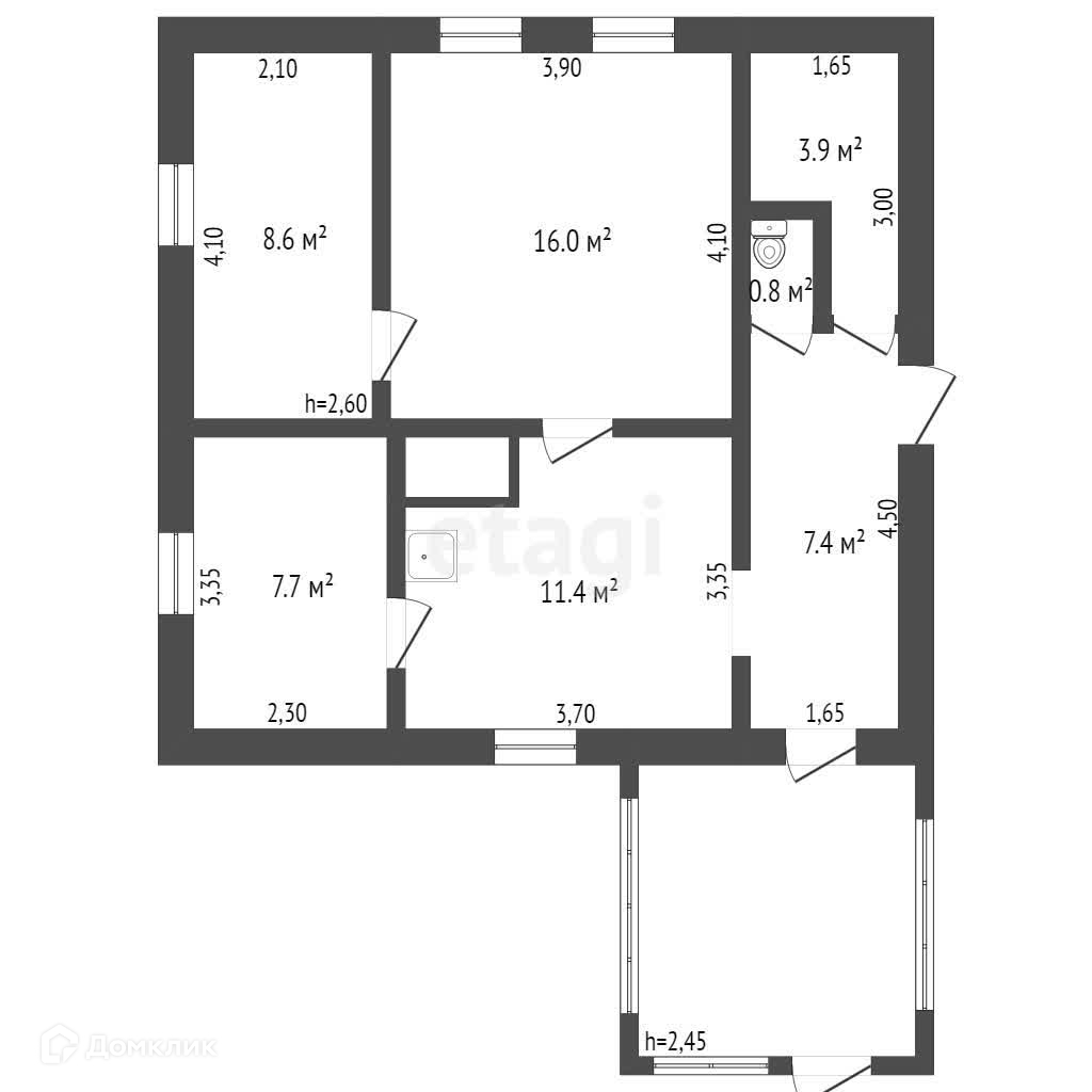 Общая площадь 55.8 м2