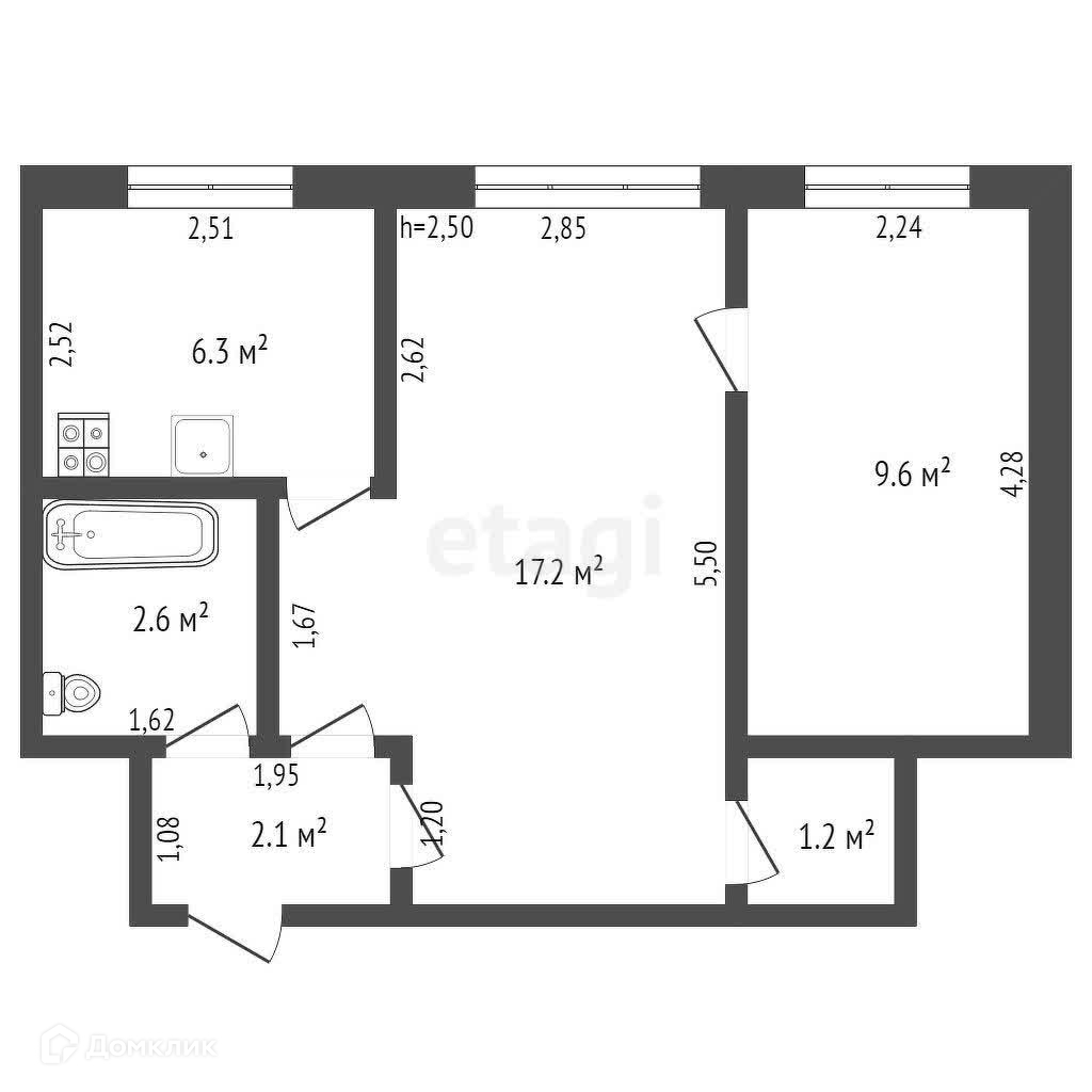 Площадь кухни 6.3 м2