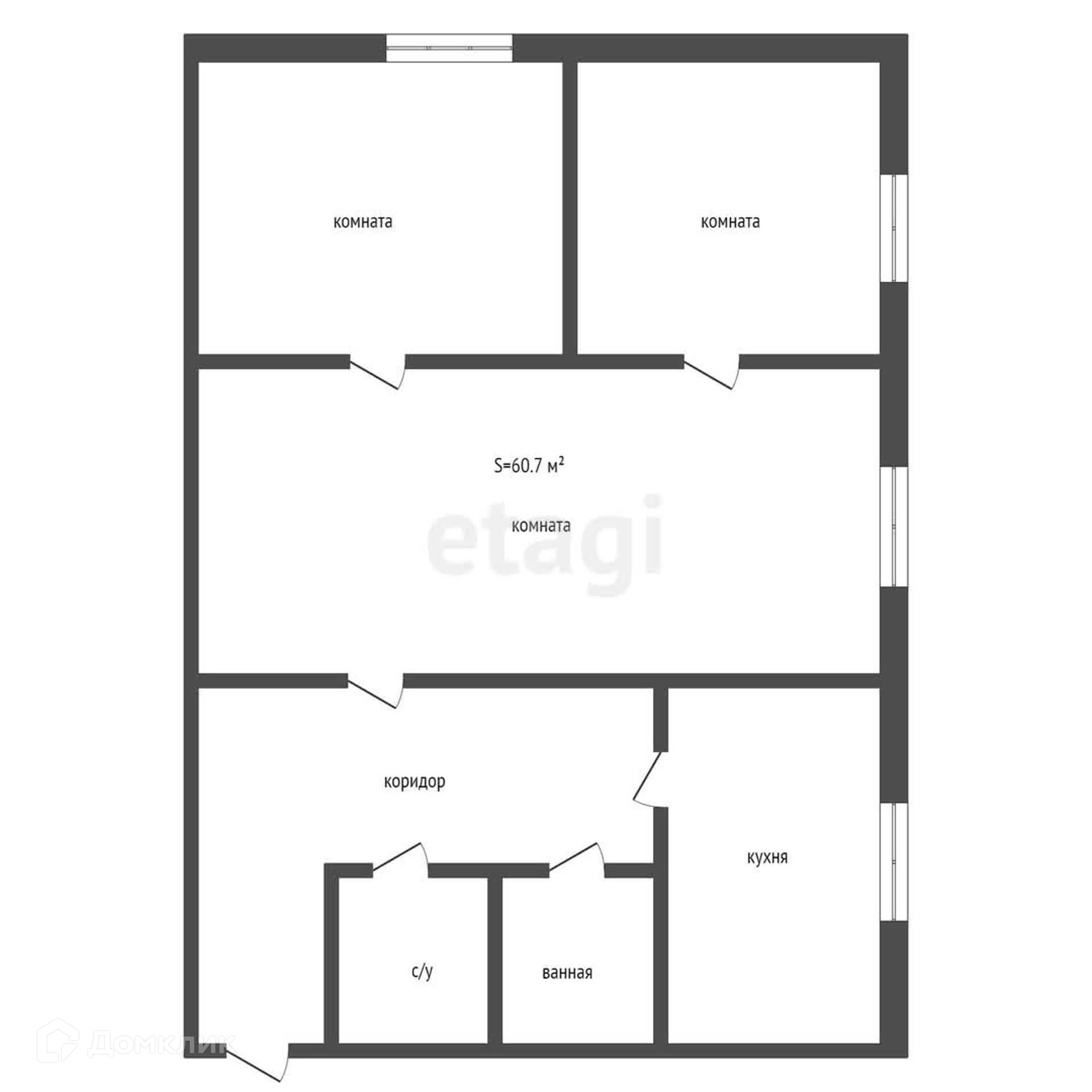 Общая площадь 60.7 м2