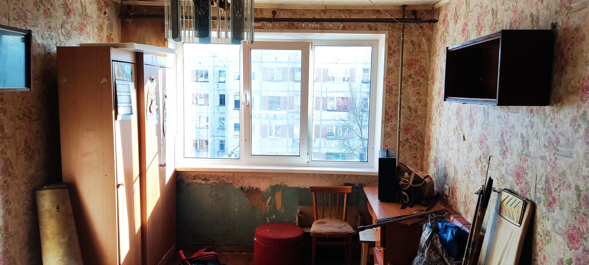 Состояние квартиры - жилое. В жилой комнате установлено ПВХ окно.