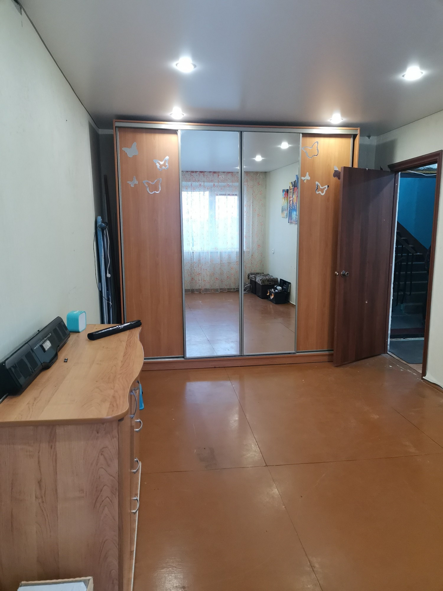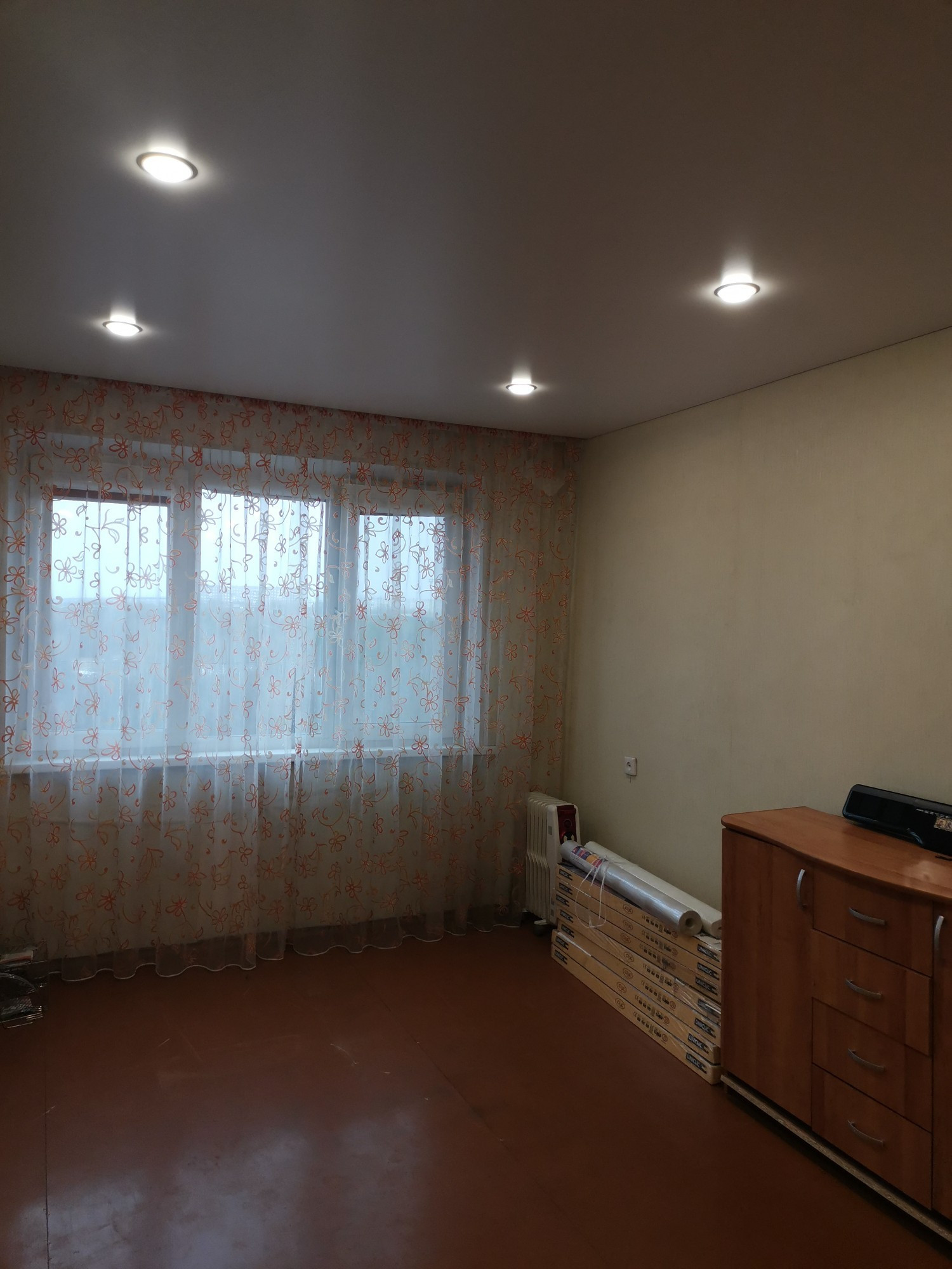 Стоят хорошие качественные окна ПВХ, натяжные потолки.
