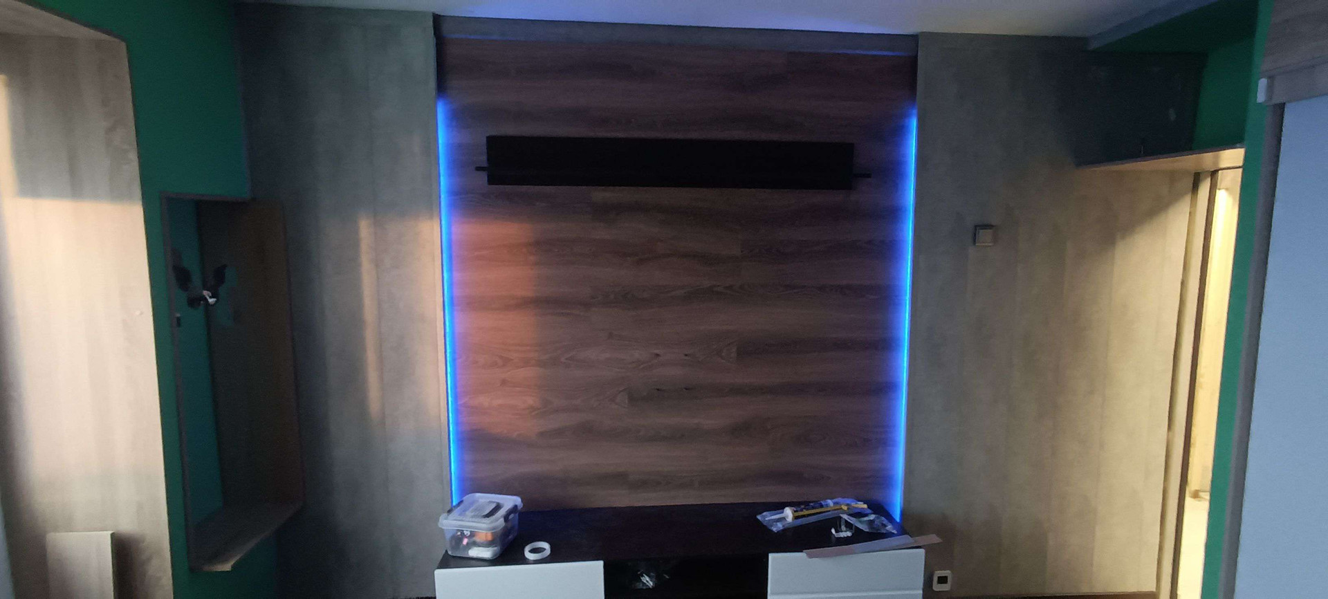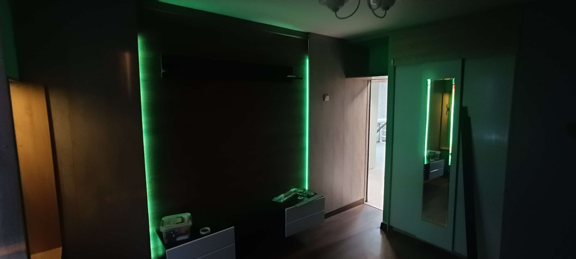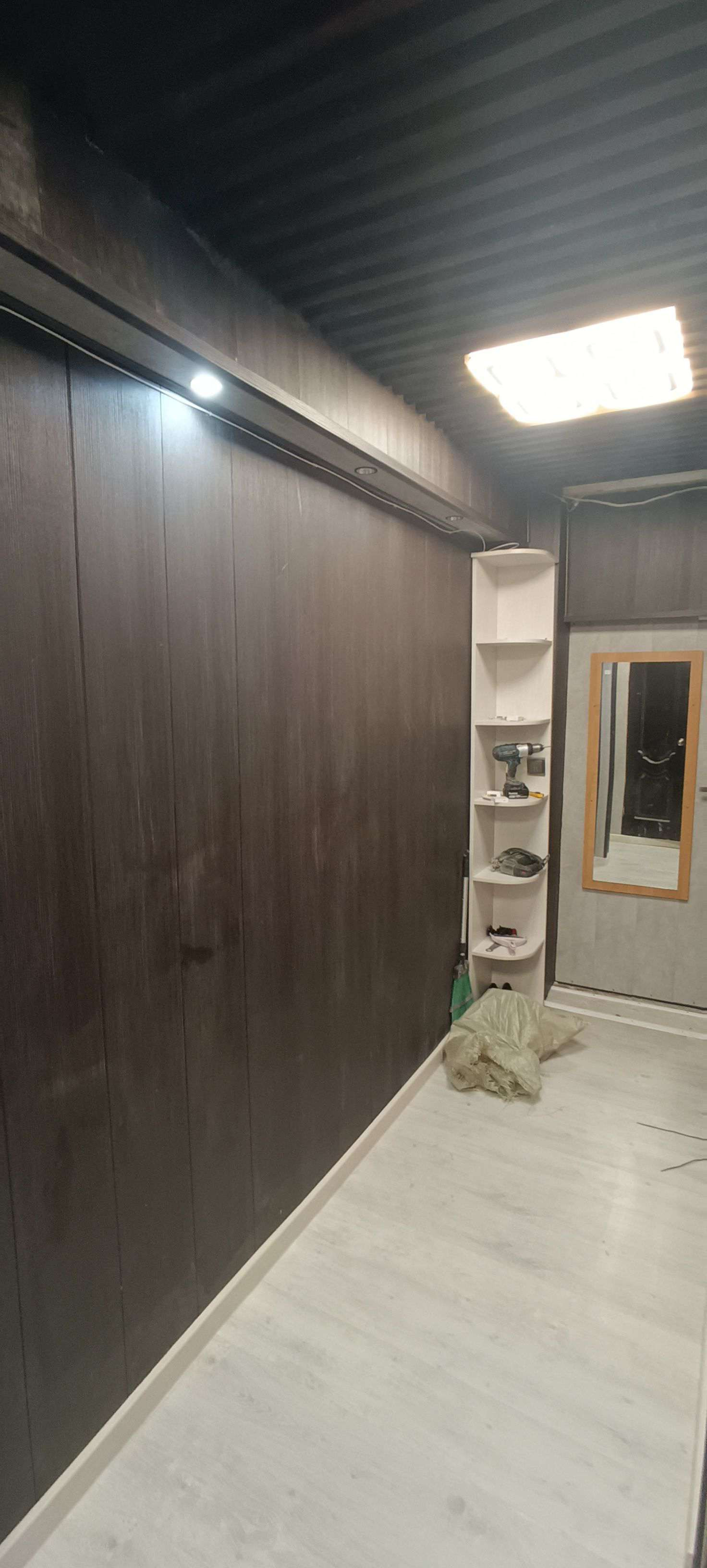 Заменена эл.проводка на медь (3*4), установлены дифавтоматы, блок защиты от скачков по напряжению и силе тока, заменены выключатели и розетки. Смонтированы зоны светодиодной подсветки с возможностью регулировки свет/яркость.
