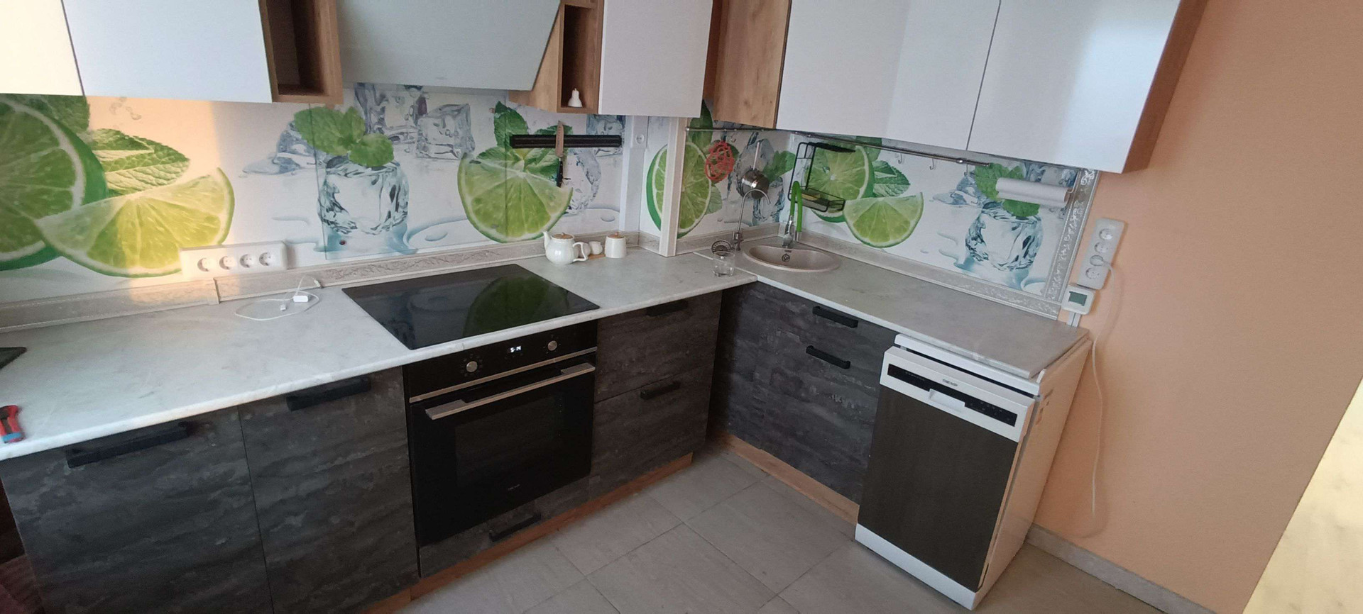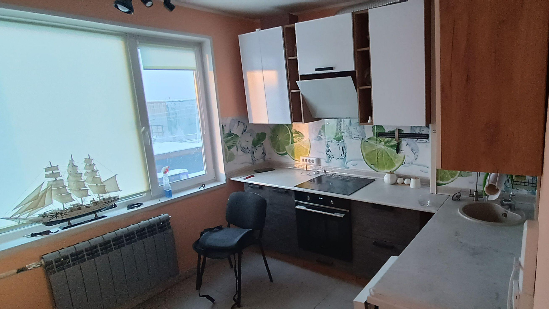 Новая кухня со встроенной бытовой техникой: духовой шкаф, варочная панель, вытяжка, посудомойка. Фильтр обратного осмоса воды - фильтры поменял в октябре, следующая замена не раньше 12 месяцев.