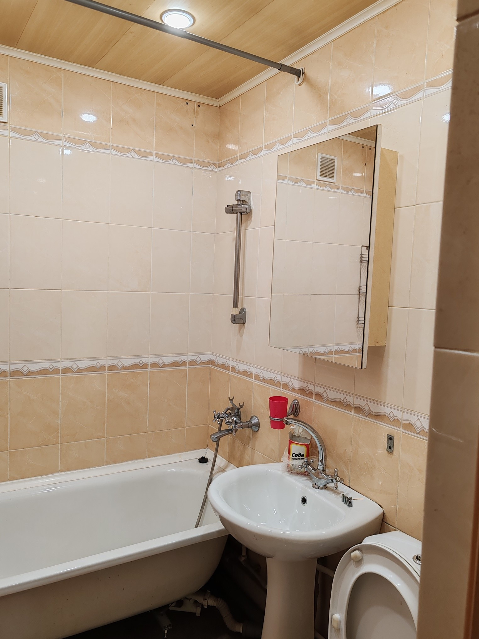 Комнаты смежные, с/у совмещение, все в кафеле.