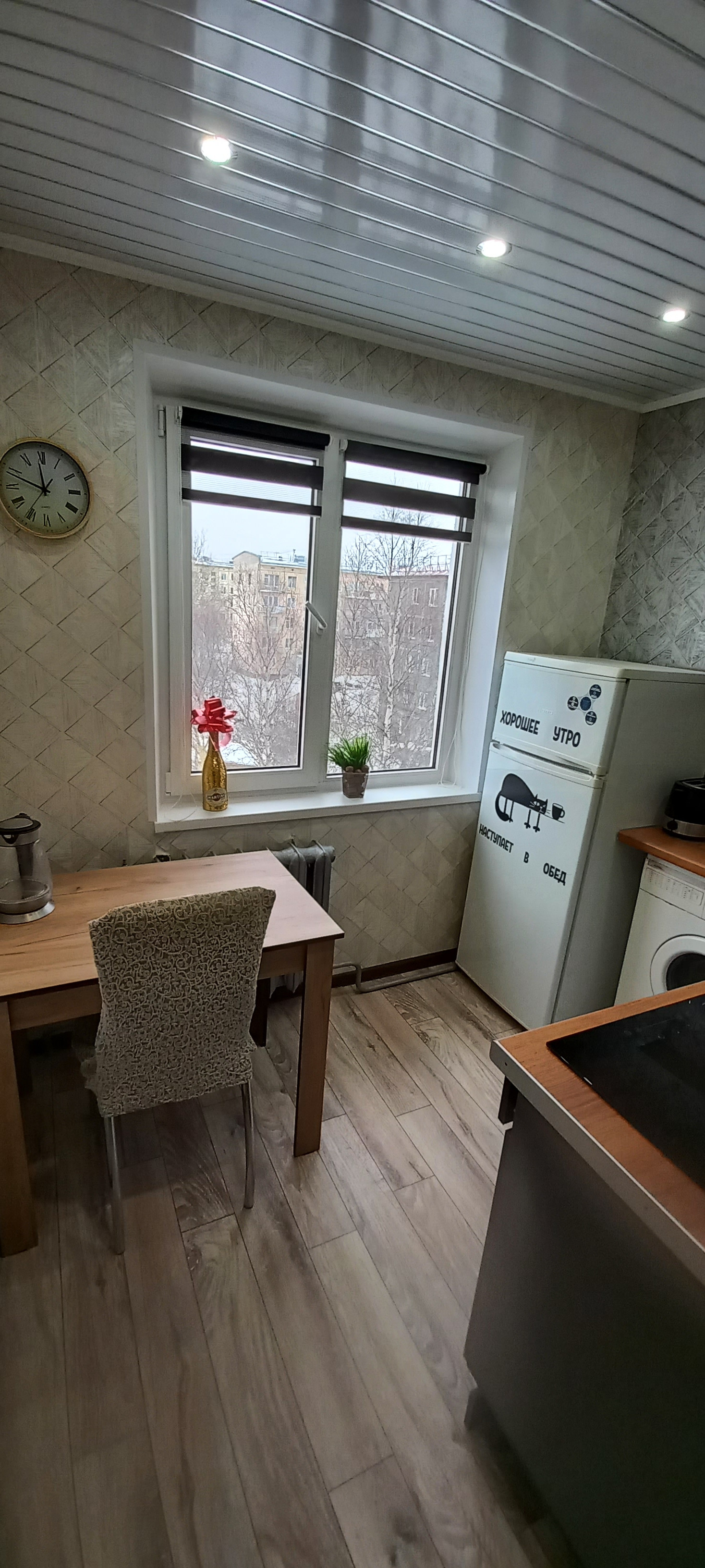Квартира готова к проживанию. Заезжай и живи(или сразу сдавай в аренду). Очень тёплая и уютная.Дешевле чем в Кировске!!!Остаётся практически всё из мебели и техники(по желанию).Большая гардеробная. Проведены кабельное и интернет.Поменяны проводка,счётчики, сантехника. Был капремонт крыши .