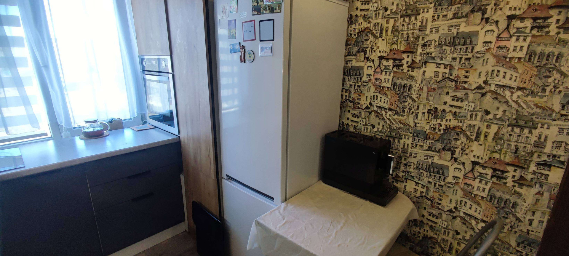 Новым владельцам в подарок остаётся полностью обставленная кухня с мебелью, варочная панель и холодильник.Так же частично останется мебель в комнатах.В квартире выделено место под гардеробную.