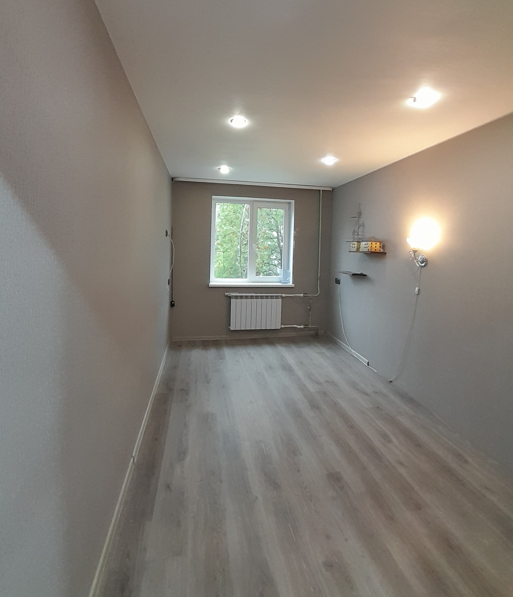 Квартира очень тёплая, светлая. Просторный коридор. Остается кухонный гарнитур. Заменена вся сантехника и электропроводка, выведены дополнительные розетки. Стены выровнены. Везде натяжные и навесные потолки. На окнах стеклопакеты. Установлены новые радиаторы. Заменены входная и межкомнатные двери. Полы перестелены, везде ламинат. В ванной установлен теплый пол.