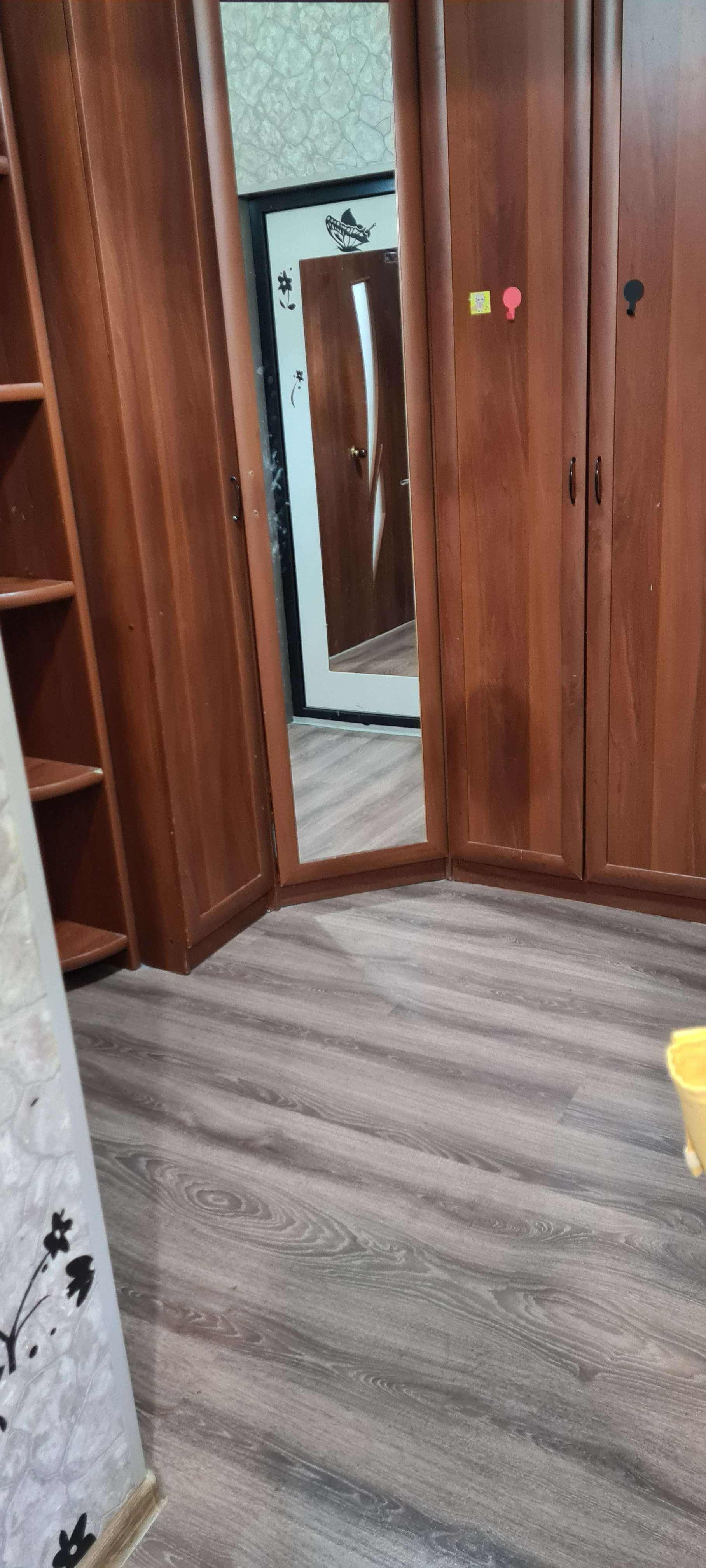 По всей квартире ламинат( кроме спальни,там ковролин)