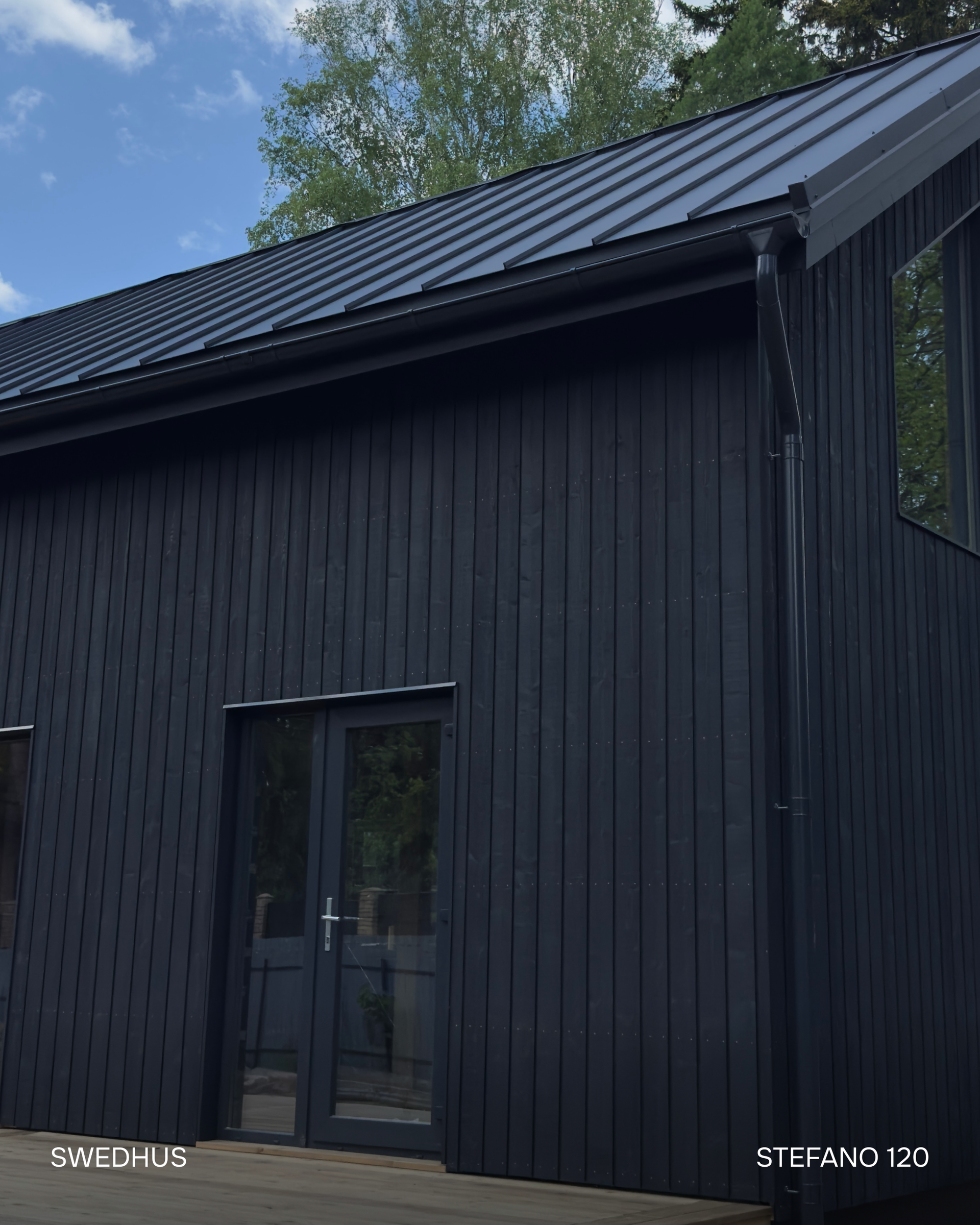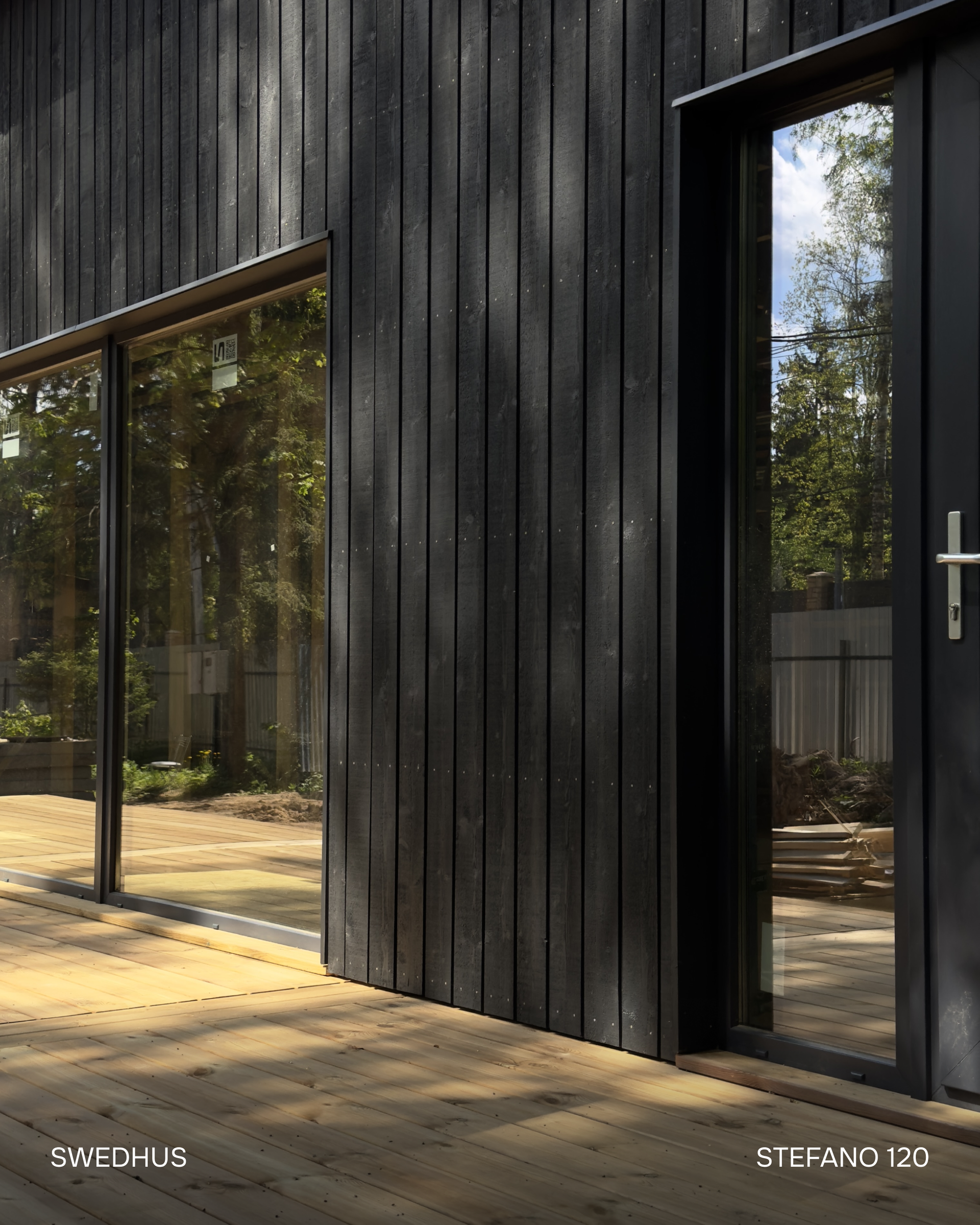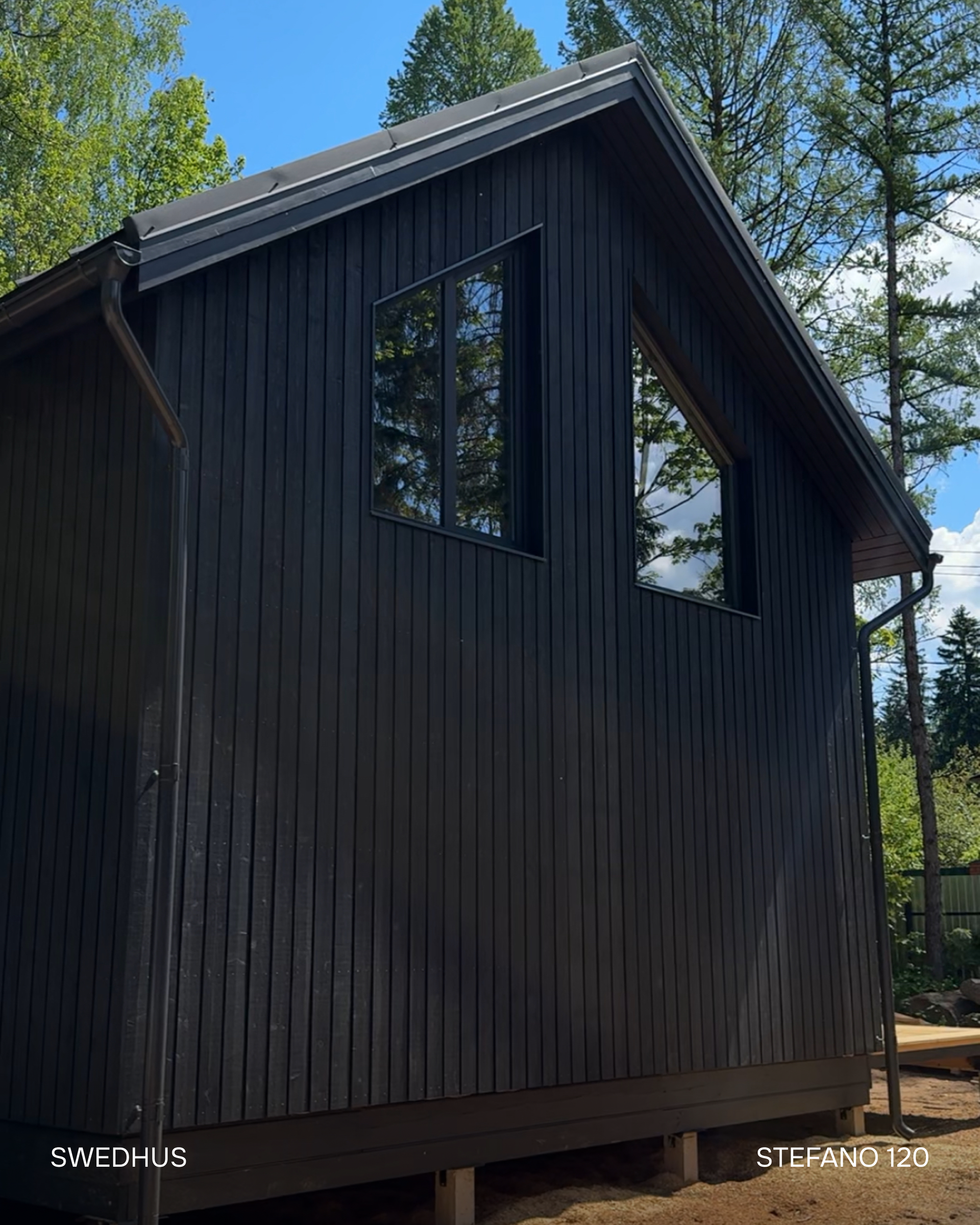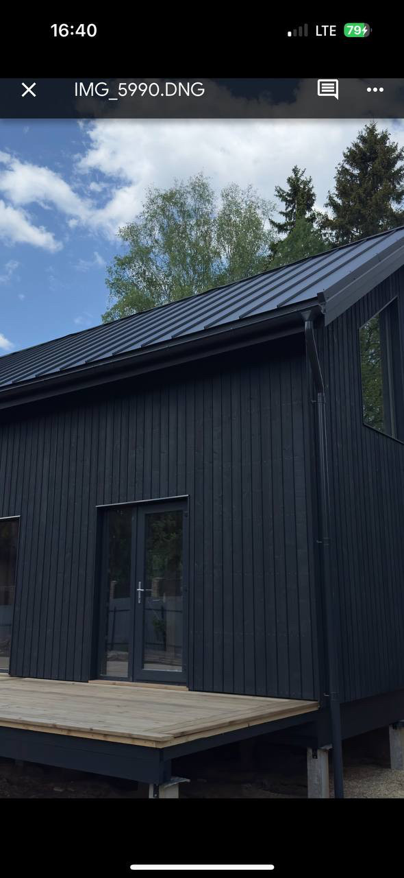 - Вертикальный фасад (заводской монтаж) - скандинавская доска c поднятым ворсом профиля UYS заводской покраски европейскими красками, 21х145 мм (1 слой грунта+2 слой краски) - Без окрашивания и ухода 15 лет!