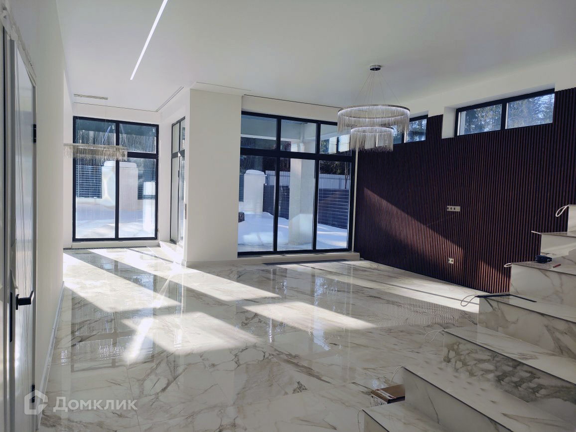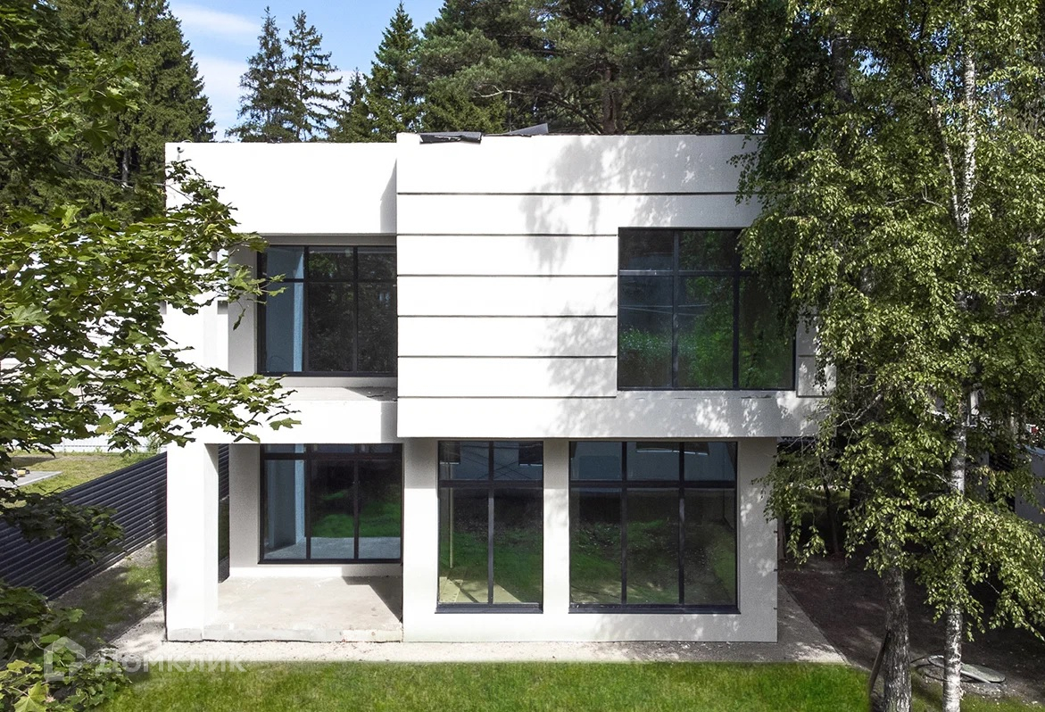 Монолитный каркас, заполнение - газоблок 375мм. + утеплитель, внешняя отделка декоративной штукатуркой. Панорамные энергосберегающие окна, все перекрытия монолитные. Полностью уложена плитка в санузлах и на полу во всем доме, установлена сантехника.