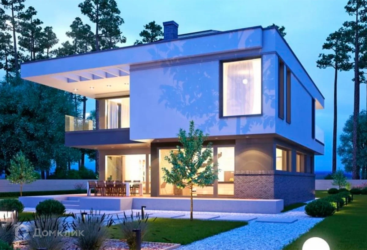 Планировка: 1-й этаж: прихожая, кухонная зона, гостиная, где обустроен дымоход под камин, панорамные окна и выход на веранду, изолированная комната (кабинет, детская, жилая), санузел. 2-й этаж: 2(!) Мастер-спальни с балконом, 2 спальные комнаты с персональными с/у санузлом, гардеробная.