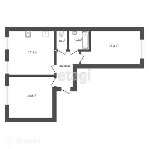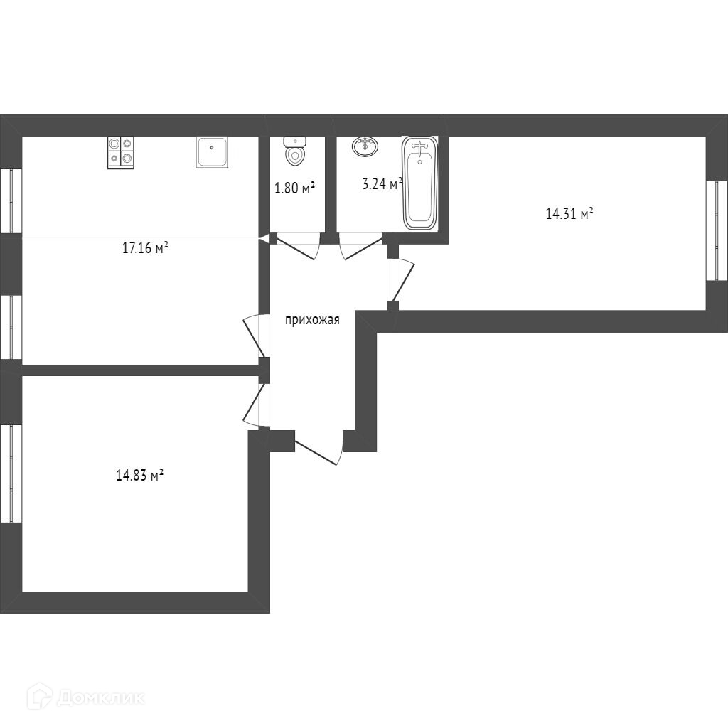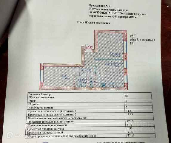 Общая площадь 57.1 м2