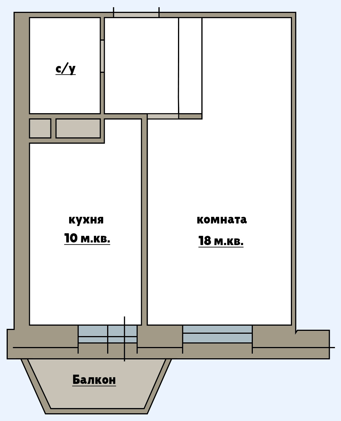 Балкон, лоджия 1 балкон
