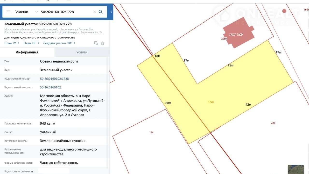 Обл. Московская, р-н Наро-Фоминский, г. Апрелевка, ул. 2-я Луговая уч. 9А.
