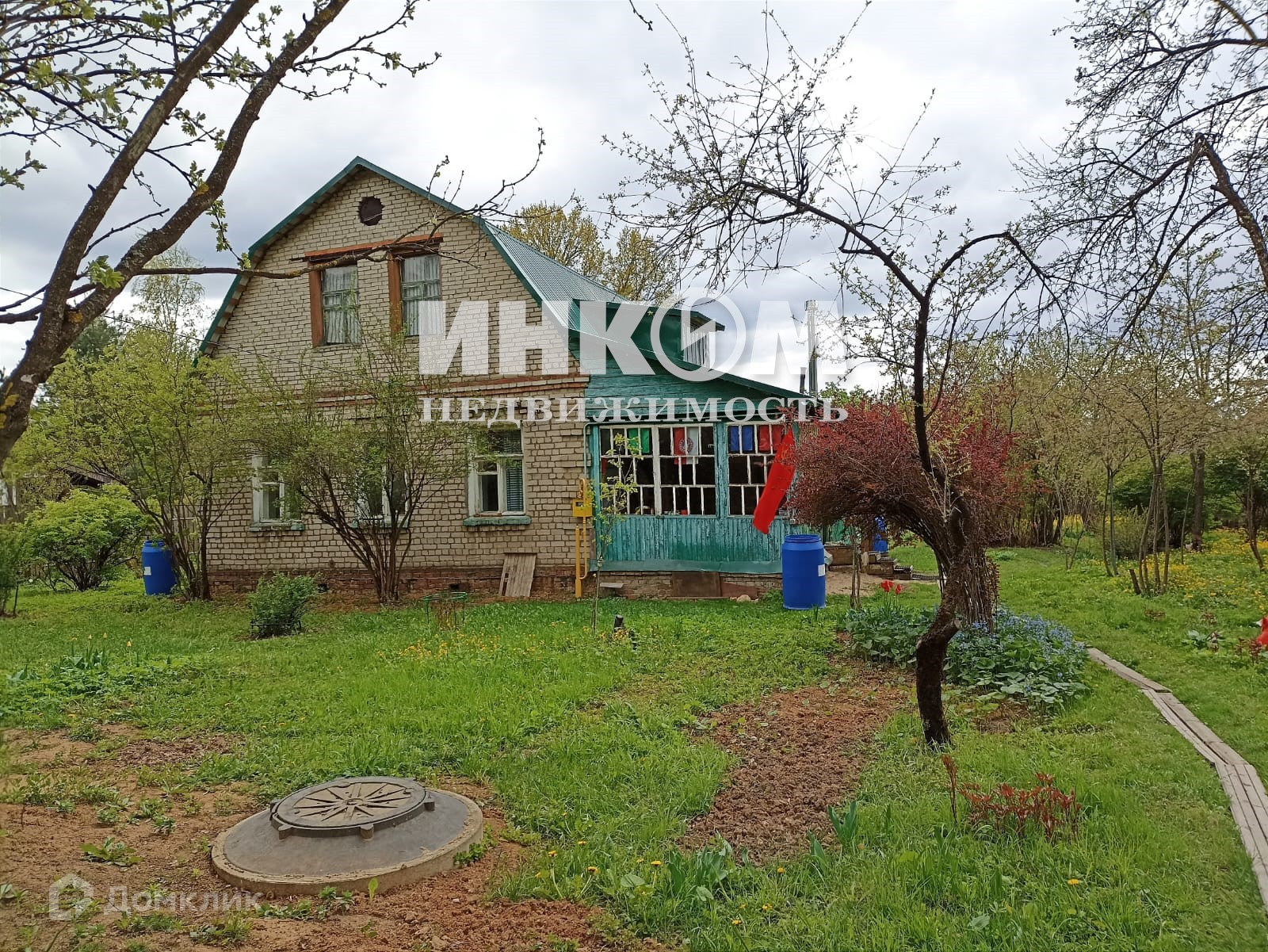 На участке имеется плодовый сад, деревья, кустарники, два поливочных колодца и сарайчик.