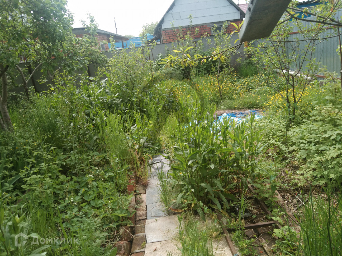 На участке растут плодовые деревья и кустарники; яблони 4 дерева, персик,вишни,слива,смородина, малина, калина,виноград и т.д.