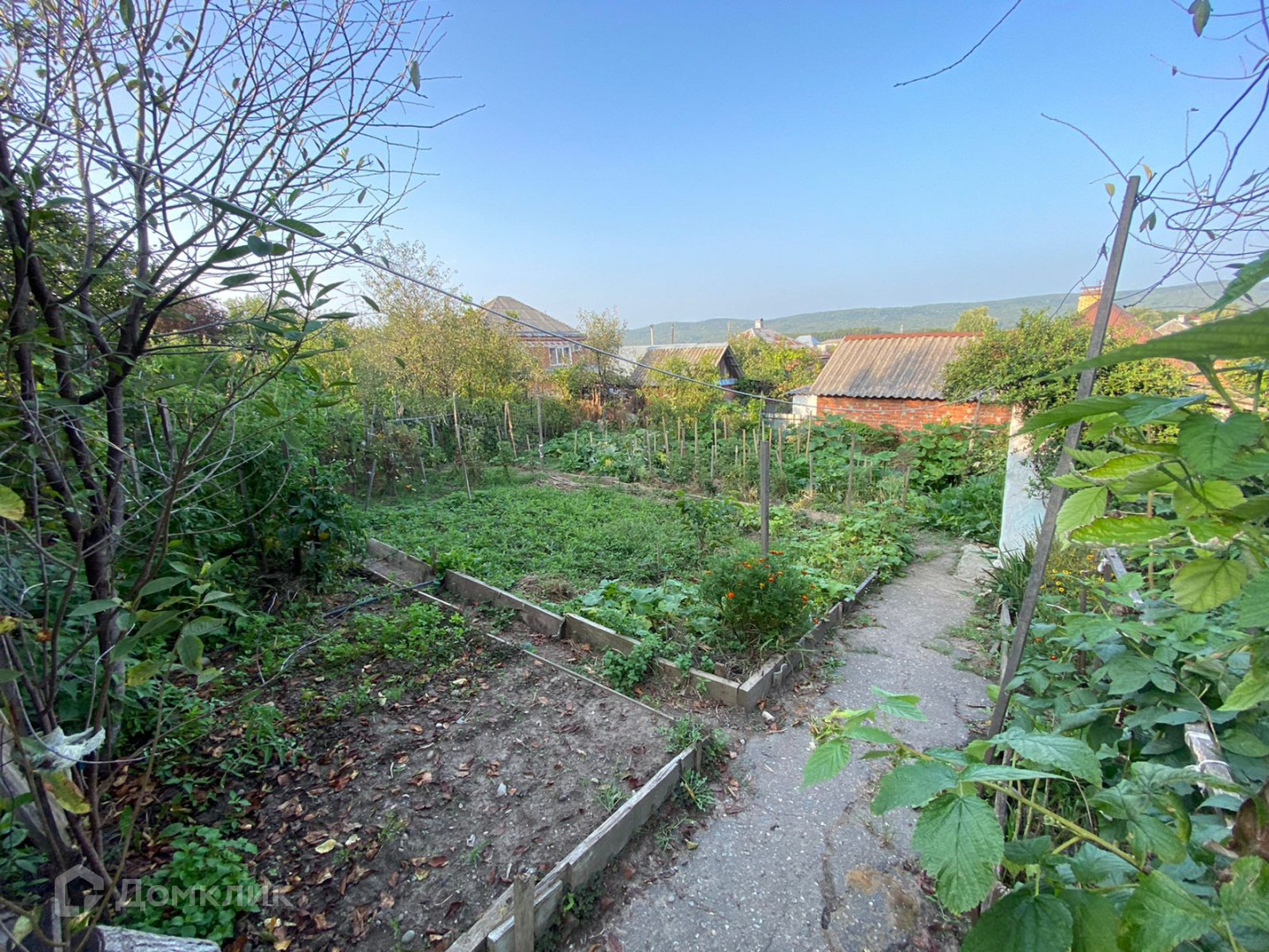Огород ухожен, плодовые кустарники, деревья на участке.
