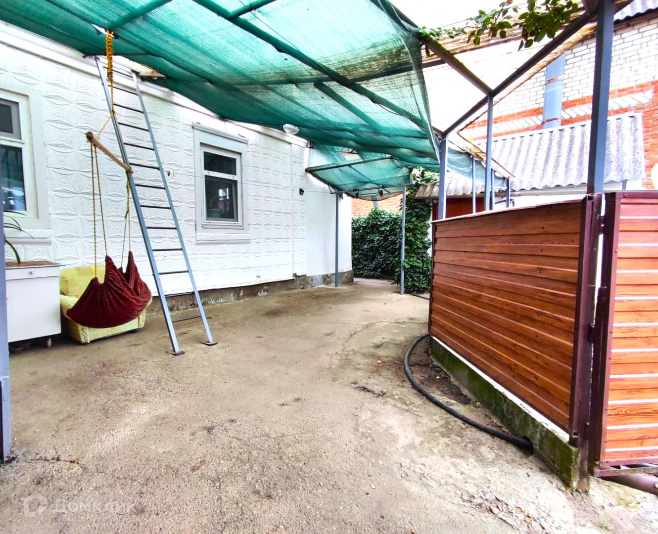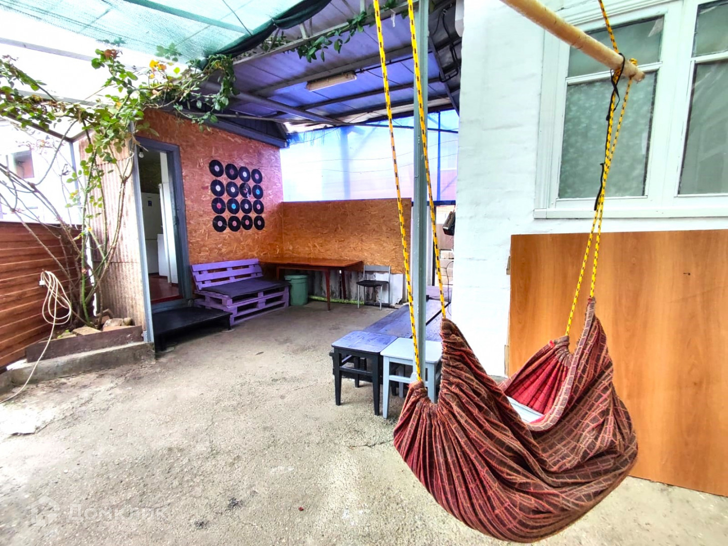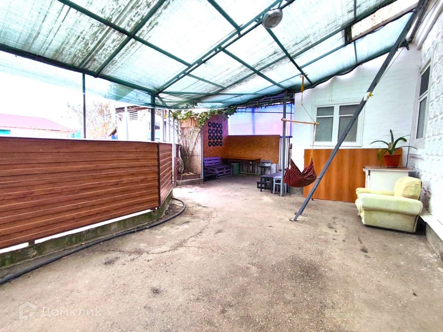 Во дворе, под навесом оборудована зона отдыха, кладовая.