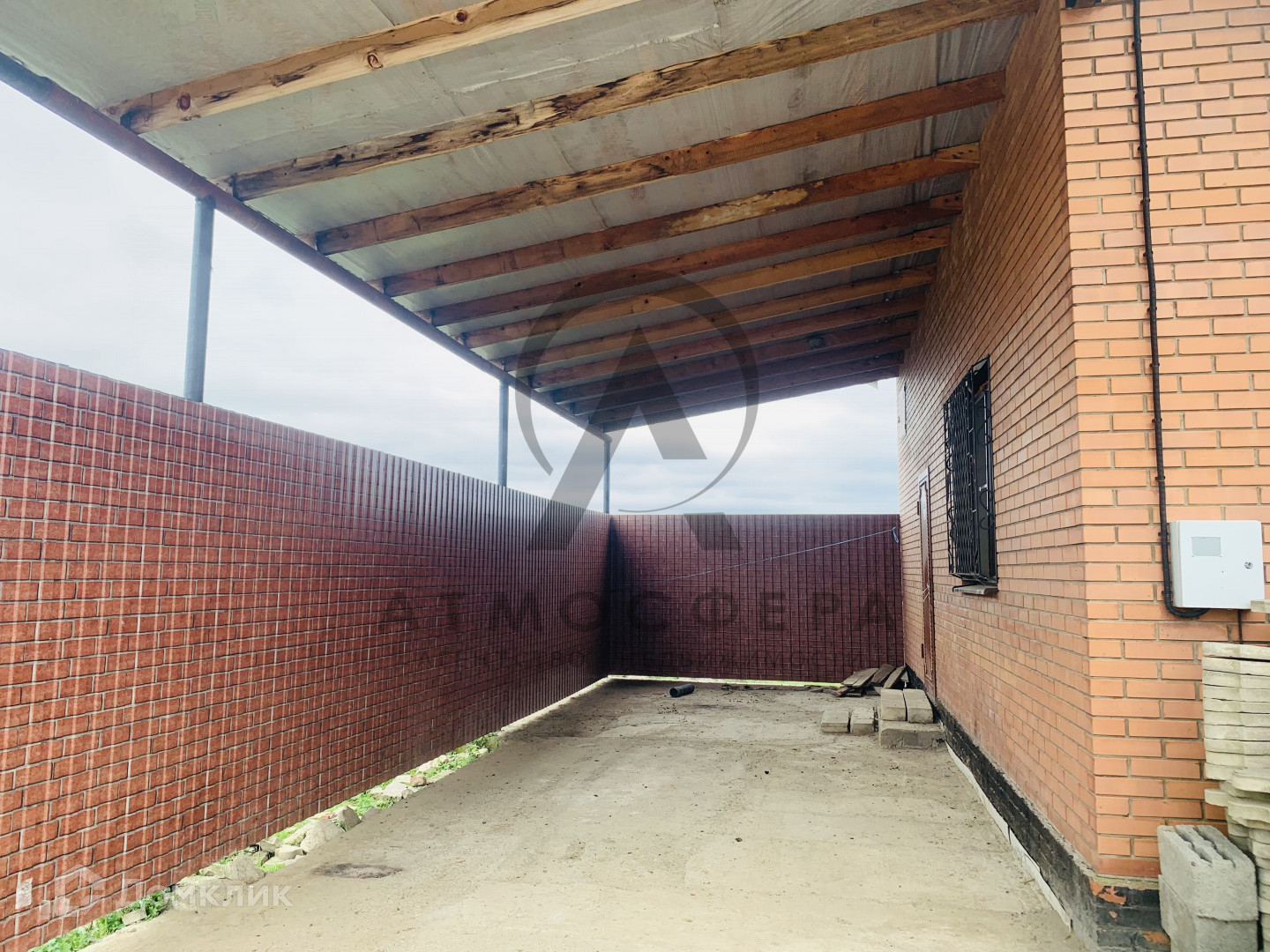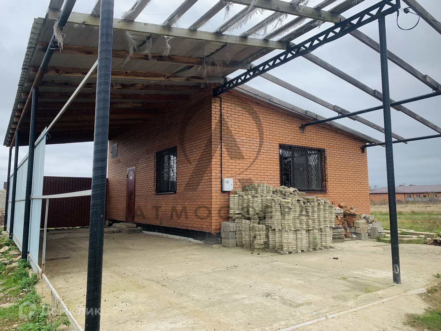 На территории участка расположен навес и частично забор, также залиты столбы под еще один навес. Двор забетонирован