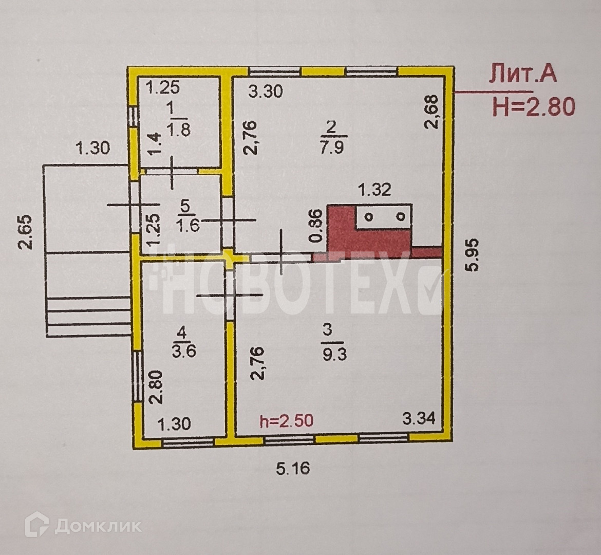 Высота потолков 2.5 м