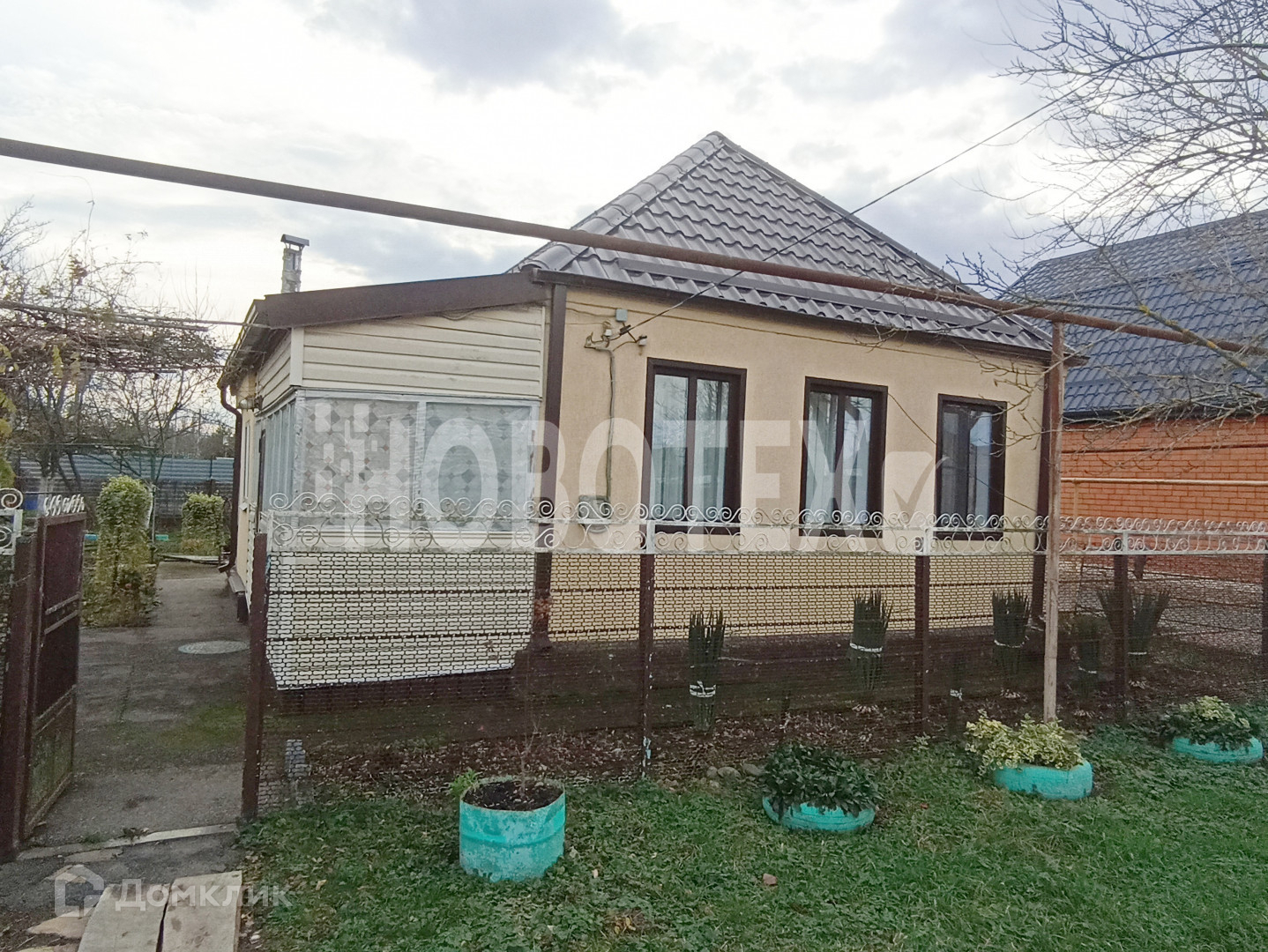 Кирпичный дом, декоративная штукатурка- короед, кровля- металлочерепица, внутри качественный евроремонт, на полу линолеум, двойные стеклопакеты, кондиционер, надежная входная дверь.