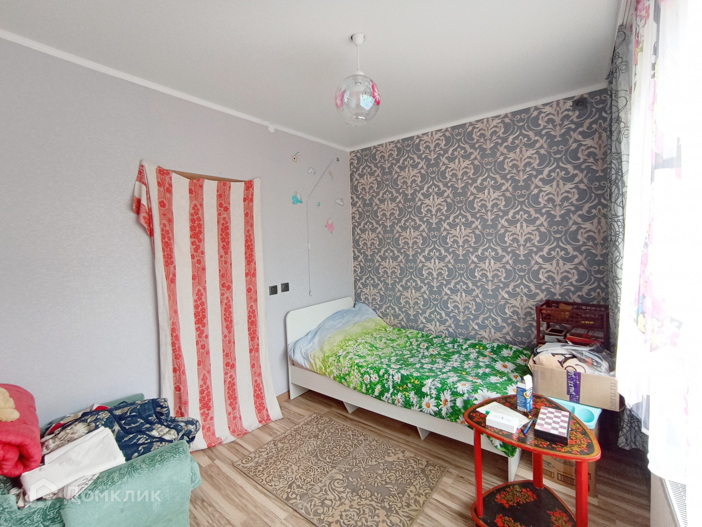 Отличный, свежий ремонт. Наклеены обои,  потолки гипсокартон,  на полу ламинат.