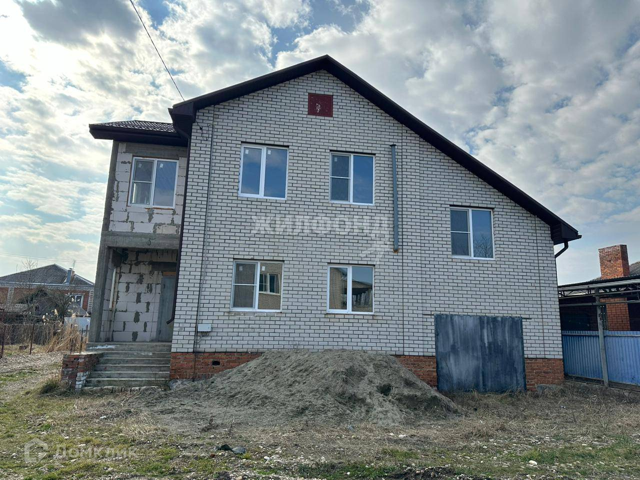 Просторный кирпичный дом 295 кв.м. в центральной части Апшеронска на земельном участке 6 соток. О доме-  При строительстве дома и отделочных работах применялись качественные материалы. Дом полностью построен из кирпича, то есть строили исключительно для себя, а не на продажу. Площадь дома почти 300 кв.м, земельный участок правильной прямоугольной формы 6 соток. К дому подключены все коммуникации- централизованный газ, установлен газовый котел, подведено электричество и заключен договор, вода, септик. Дом двухэтажный.  1 этаж- отдельная кухня, гостиная, спальня , санузел 2 этаж- гардеробная, спальня, спальня, детская, ванная комната. В доме большие окна, дом очень светлый. В доме сделана качественная предчистовая отделка, и готов для продолжения чистовой отделки. Участок огорожен по периметру забором, запланировано место под автомашину и зону барбекю. Большая придомовая территория. Имеется гараж.  О районе- Дом расположен в прекрасном месте г. Апшеронск. В шаговой доступности магазин, остановка общественного транспорта Варианты продажи-  Любая форма оплаты. Ипотека. С удовольствием организуем просмотр в удобное для вас время. Отличный просторный дом, в котором вы можете сделать ремонт по своему вкусу.                Возможен обмен на вашу недвижимость.