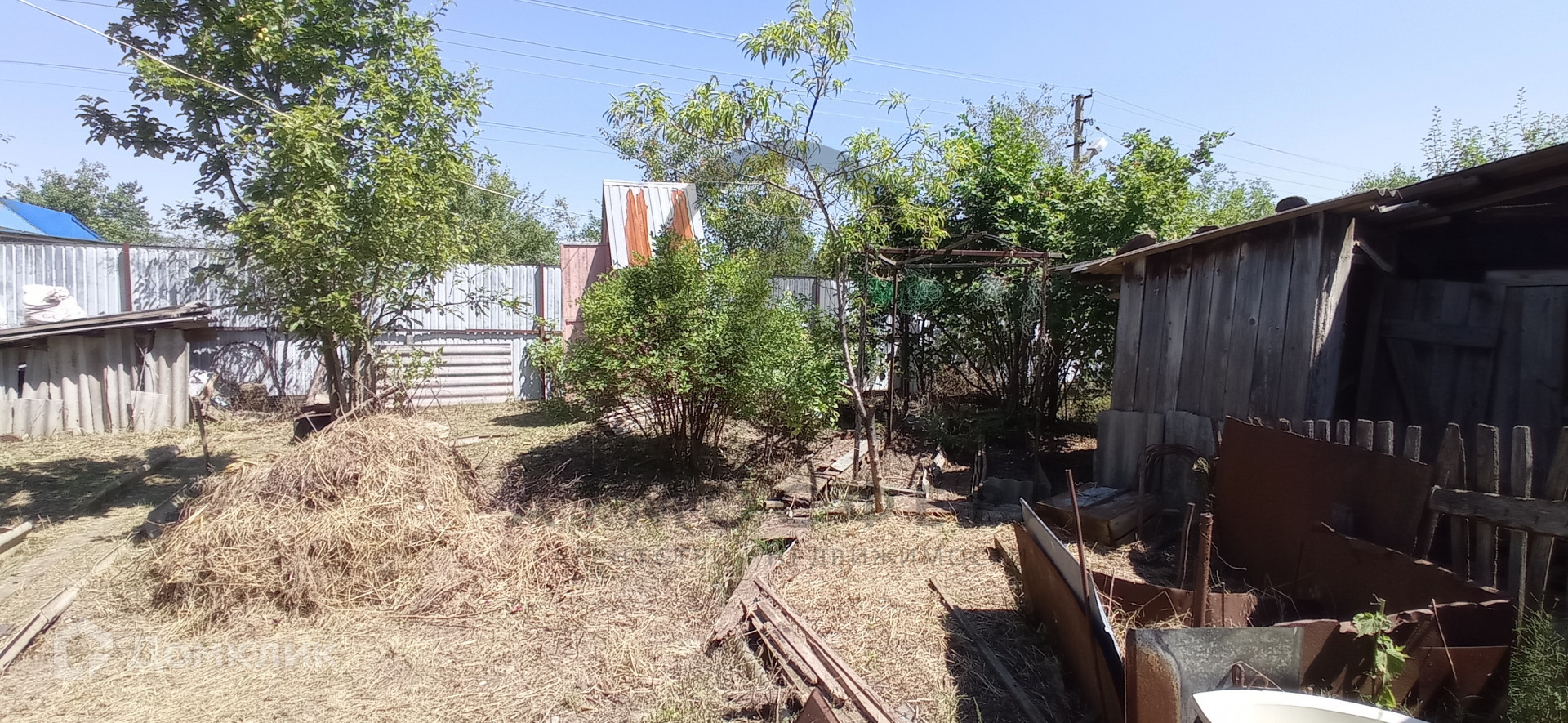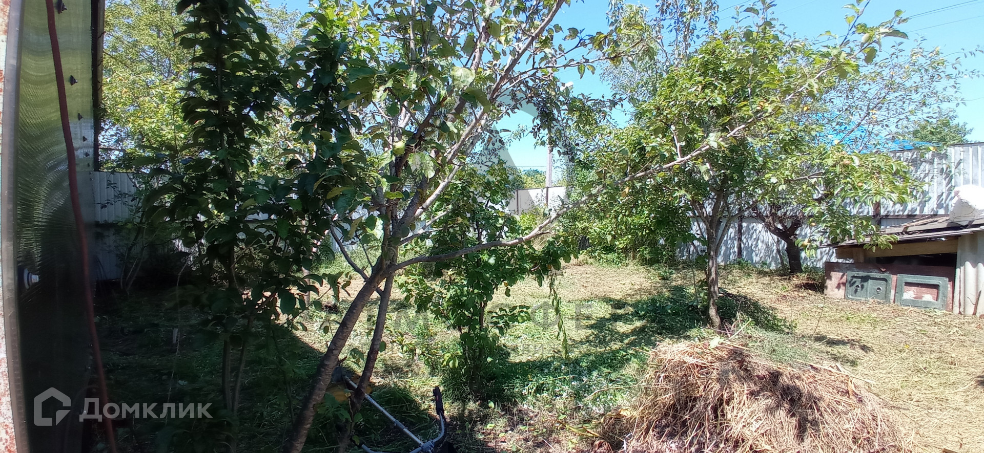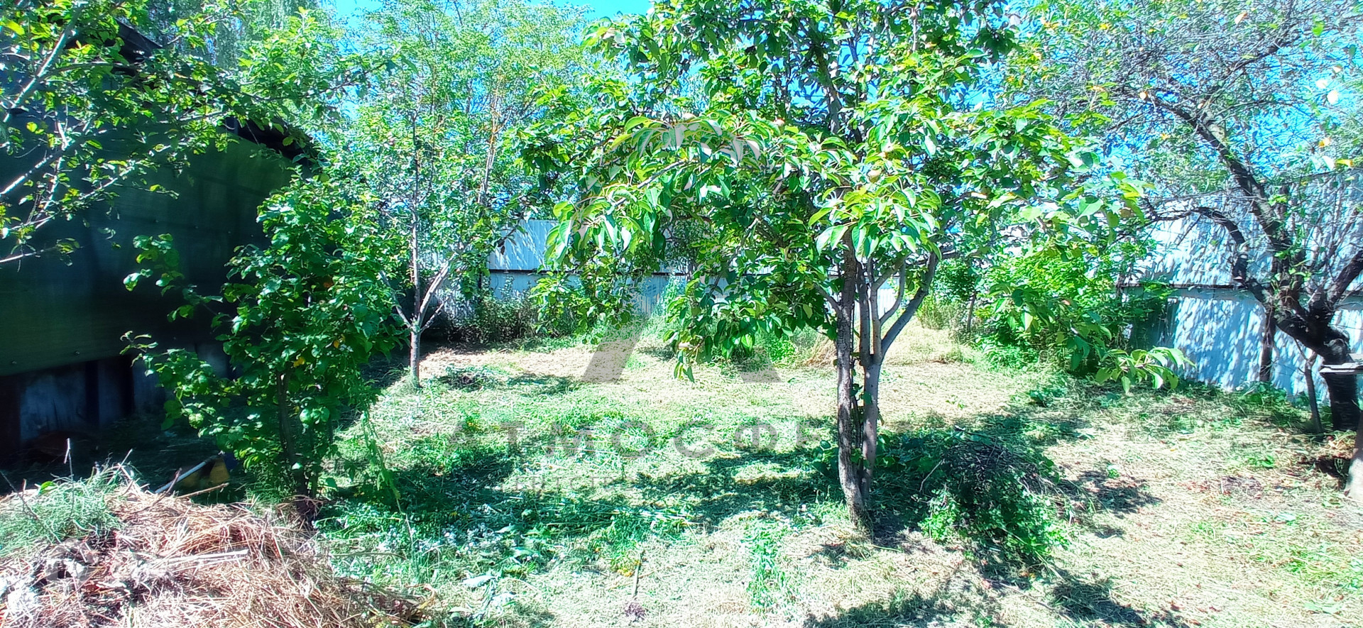 На участке растут много плодовых  деревьев, вишня, груша, яблоня, персик, слива, малина, смородина...